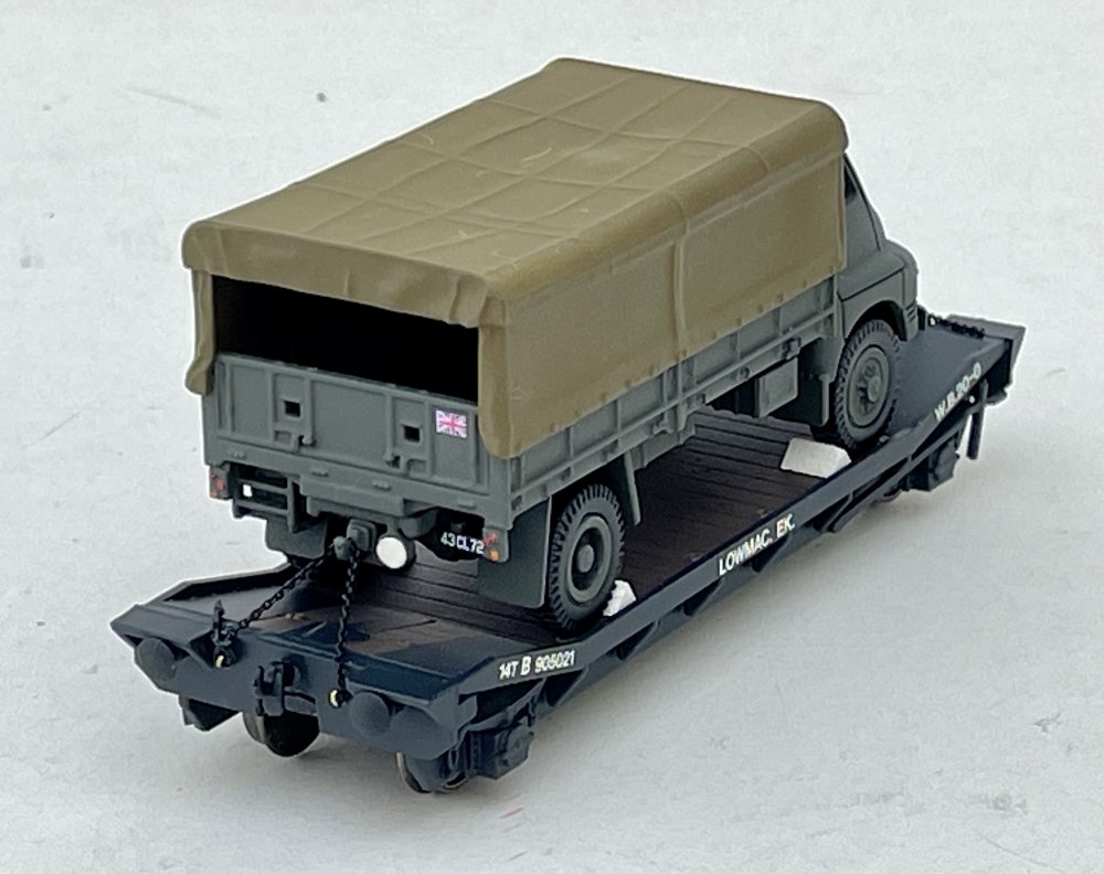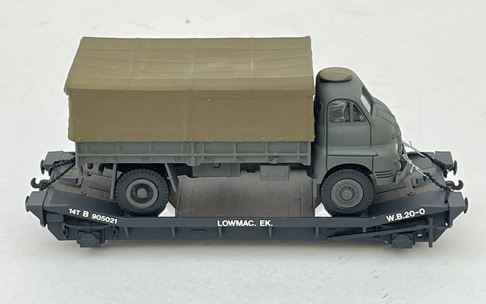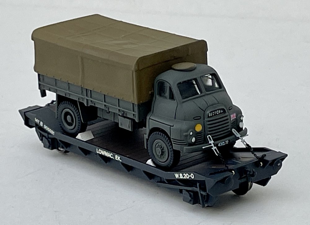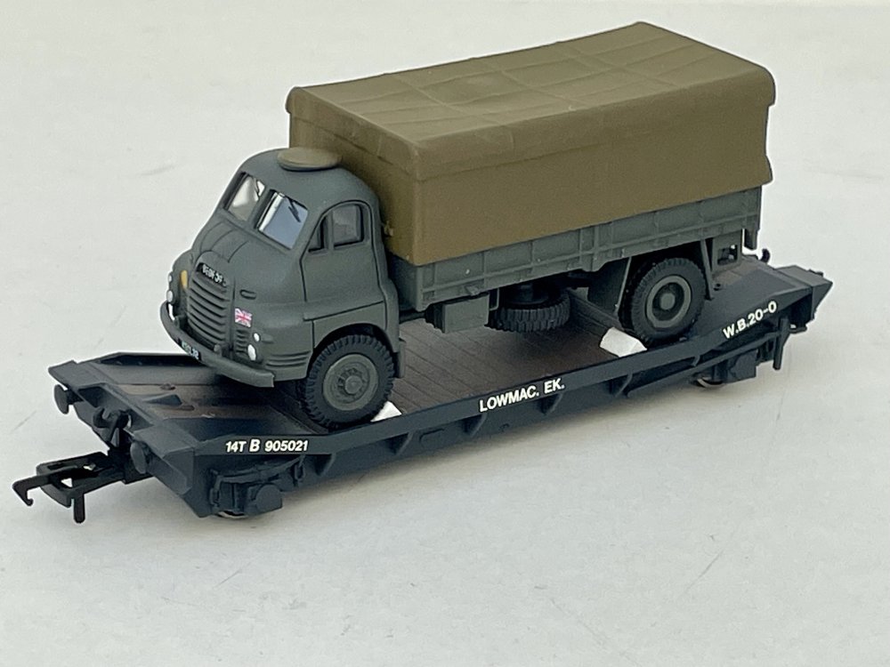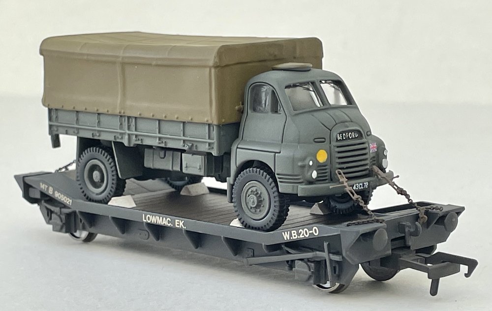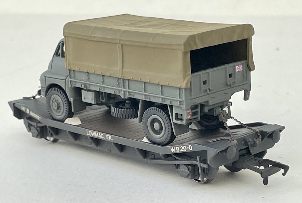 Oxford Diecast Bedford RL modified and repainted to be a Lowmac load. Before:- After:- I lowered the tilt to “railway transport” configuration. Cheers Darius