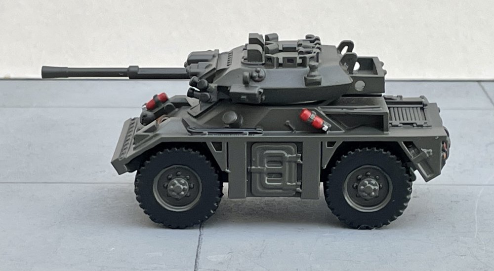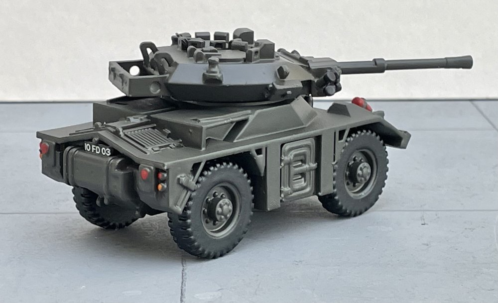 Mk1 Pig completed. I remember queuing up with my Mum and sister in the street beside the Avenue Cinema in Belfast one evening back in 1978 to see the film Grease. We had just moved to Belfast (Dad worked for Michelin) and the street was fenced off down the middle as the Grand Central Hotel next door was being used by the Army. Vehicles like these were being prepared to go out on patrol. Both the cinema (a real flea pit as I recall) and the hotel are long gone and the Castle Court shopping centre occupies the space today. 1:48 scale Alvis Saracens - HLBS resin kits. 1:50 Alvis Stalwart Mk1 - modified Verem diecast model. Cheers Darius -