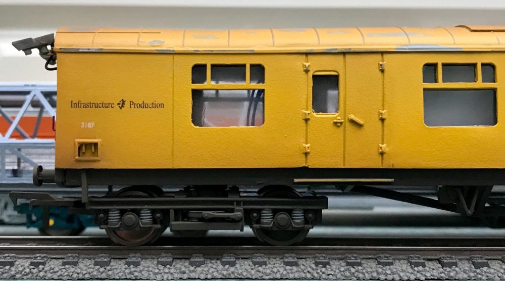 For the left over containers I built an NIR bogie container flat using a spare Ian Kirk kit coach chassis, some Triang bogies and bits of plasticard.