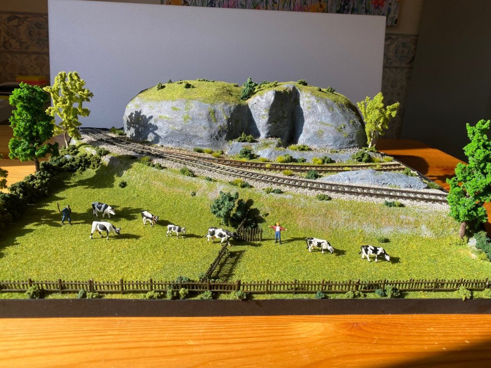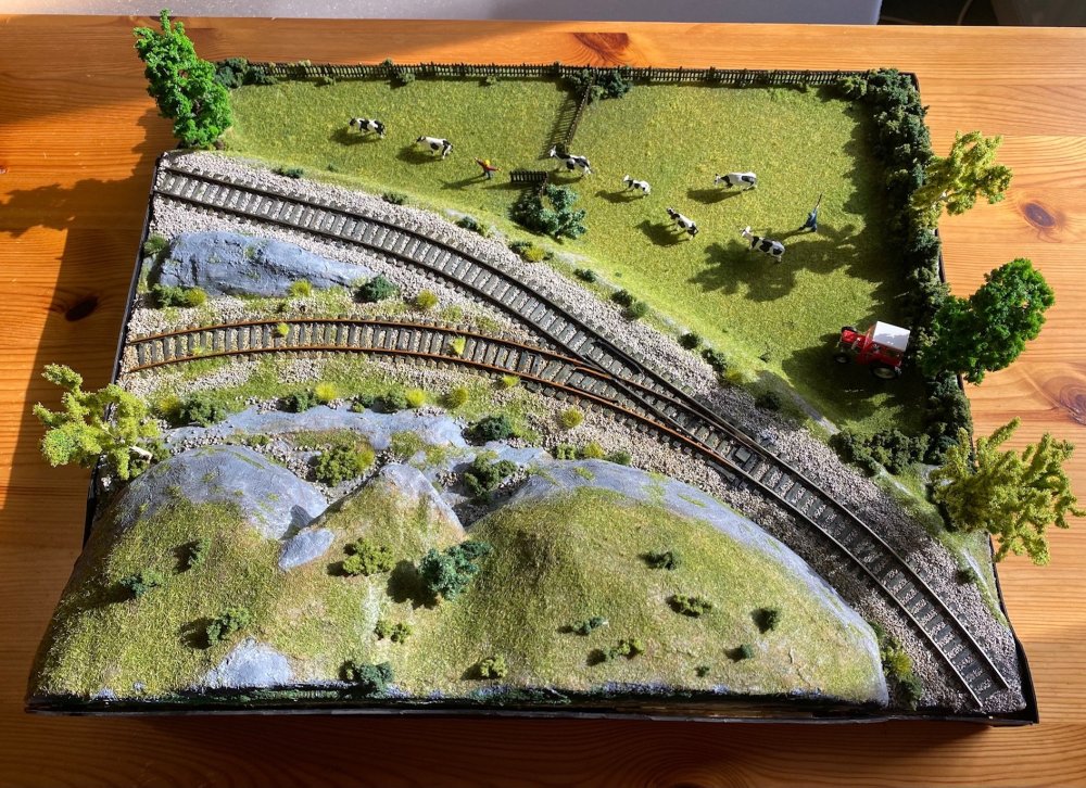 Hello, I reconnected with this great hobby about 12 months ago, my only previous experience was glorified train sets in my early teens, (a long time ago !). I have thoroughly enjoyed the past year in the hobby and learnt so much from outstanding resources such as this illustrious forum, reading and of course the world of YouTube. I have only been to one model railway show, the Wexford Model Railway Club Open Day, last October where I learned so much and was greeted with warmth and enthusiasm - I hope to get there again in a couple of Weeks’ time for the 2022 Exhibition. To practice and apply a whole range of new skills for the very first time (track and scenic planning, construction, track laying and ballasting, painting, trees, bushes & grass etc.) I decided to attempt a small diorama on an unused IKEA shelf ( 42x50cm 17x20”) I had over from another project. The intent was to have a raised railway line passing through a hilly/mountain landscape including a disused former mining/quarry branch line, with accompanying scenic to enhance the viewer’s experience. Overall, I’ve learned a tremendous amount from this experience - satisfied with some aspects, others I will approach quite differently next time. Finally, I am taking the liberty of sharing this on the forum, amongst some incredibly accomplished modellers, but this is a broad church, and my first attempt effort may prove useful to some early phase modeller - go easy ! Rush & Lusk (George)