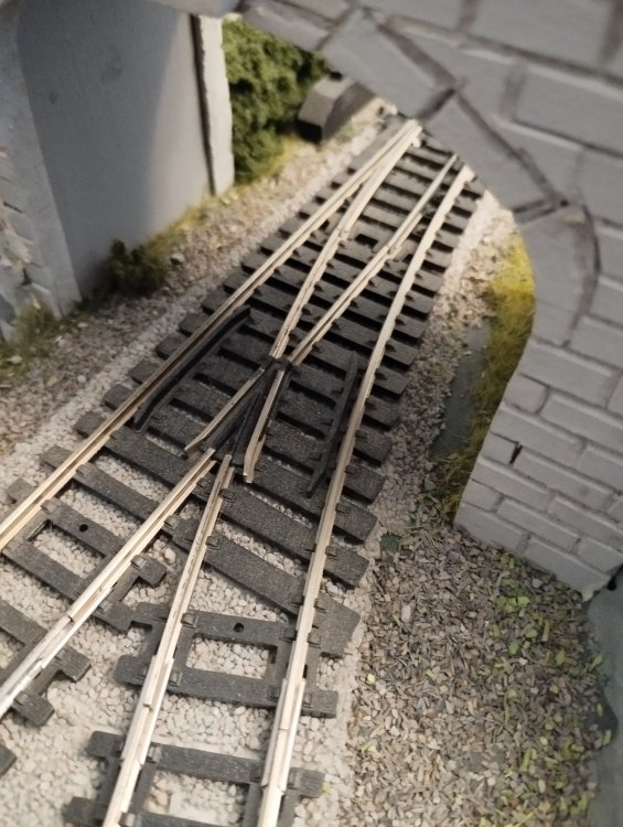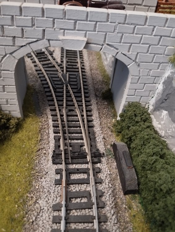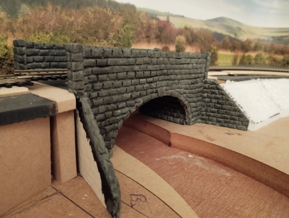 sorry, dont know how that last post appeared. Anyway thanks for the help lads, especially that extremely one from Signalpost. Really went the extra mile to help. I think those clips could be the problem okay. When I switch the power to the main oval I have to use a little piece of wood to keep the blade fully connected ( the little black set up just before the bridge) so I think that left hand points is definitely not operating properly. I cant get near it until the weekend, but when I do will report back. Thanks for the kind words too on the scenery, although I,m not too sure myself. The bridge and tunnel facings were made of 6mm mdf, with a wood chisel used to carve out stonework. I have since discovered the joys of modelling clay and intend to replace the bridge at least. Here is another bridge on same layout from clay. Thanks again
