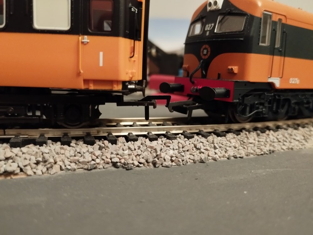 I have just biught 3 Murphy Models mk2 composite coaches and 1 mk2 1st to be pulled by IRM,s Aclass loco. After two or three trips around the layout the coaches derail, despite running at snaails pace. Is anybody else having problems with these coaches?. (I am running them on large radius track) The sprung couplers seem over complicated. Wonder if they are causing problems?