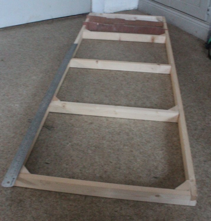 20. Back doing some work on Ballywillan, after another hiatus. I've started work on the first section of baseboard. I've made the main frame, which is 1600 mm long and 550 mm wide. The south end of the baseboard (nearest camera) will be totally flat. Except for a 4 mm rise on the western edge. I will use a piece of ply 887 mm long by 550 mm wide for this. The map of Ballywillan (below) shows the main frame and plywood baseboard as red rectangles. On the northern end the ground will rise 10 mm to the NW corner and drop 14 mm at the NE corner. The trackbed will remain flat. I'm not sure yet how I'm going to create this non flat landscape, but I'm experimenting with plywood templates, to give me the basic shape. I've used Google Earth to survey the ground (below). The number in the bottom right hand corner of the image is the altitude in feet, under the mouse. It makes surveying the ground a breeze. Once I get this section finished I will make extensions to the north and south