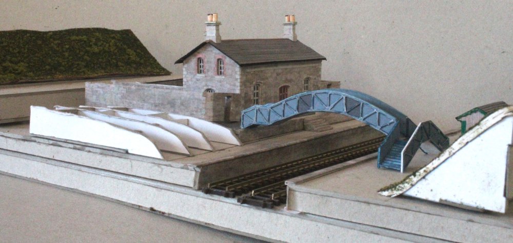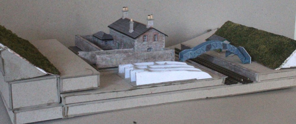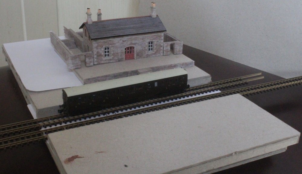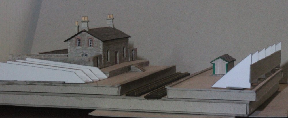 16. I'm on a steep learning curve right now. Landscaping, laying track, ballasting, and buildings platforms are all new to me. Rather than make big mistakes on the Ballywillan layout, I've decided to make a small diorama based on Crossdoney Station and make my mistakes on a small scale first.