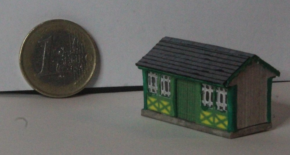 15. Making progress on the Crossdoney diorama. The shelter is the smallest structure I have yet modelled. The windows look very ragged up close but work fine when viewed from a distance.