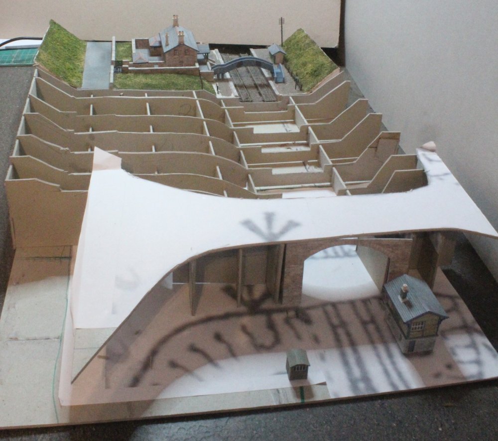 3. Ballywillan stays on the back burner a bit longer. I'm still stuck in Crossdoney, extending the diorama to the south. The road bridge is the main design challenge here. I've used printouts from the 1901 OS map to get the positions right. All made so far with 2 mm mountboard.