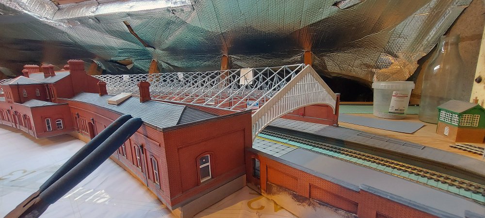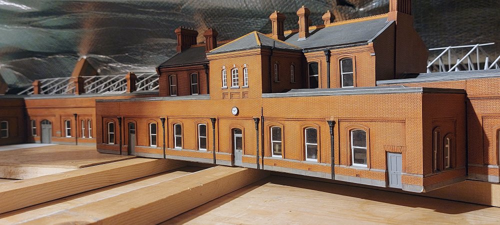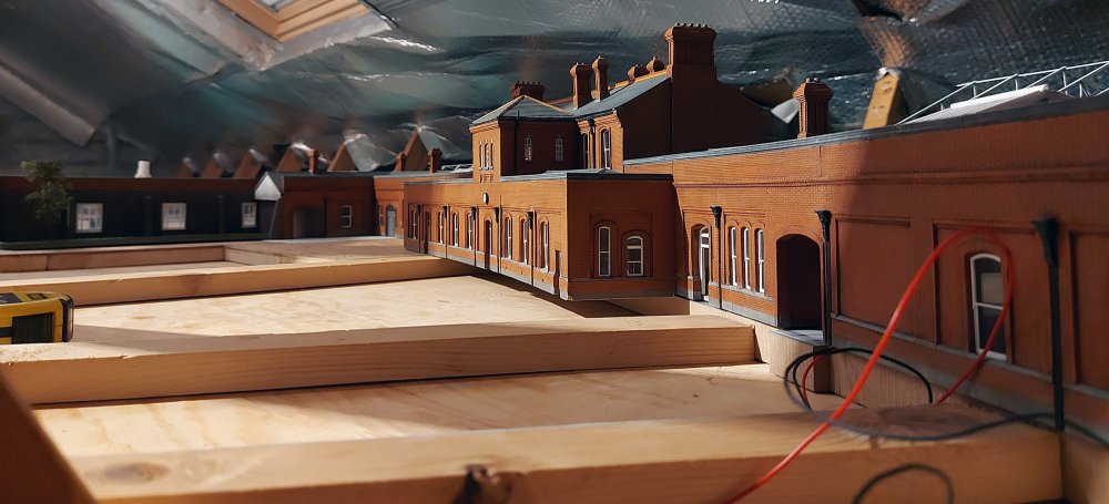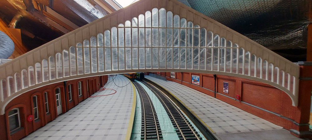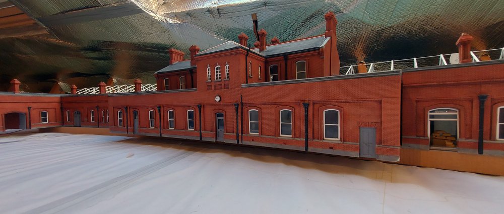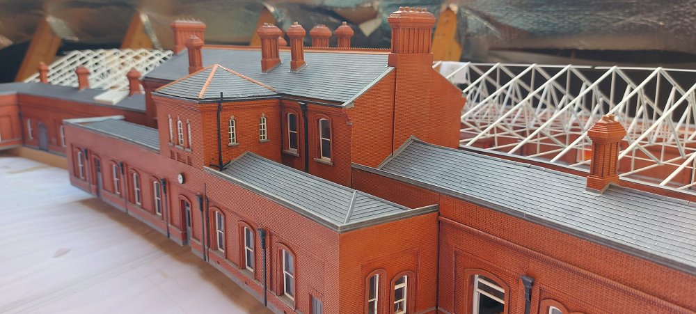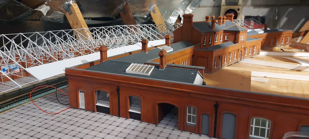Thought I'd share some update photo's of the progress over the past year. I really do need to be more regular with these updates but you know how it is. The roof trusses got finally finished, they're 3d printed and tied together in 3 main sections using wire lengths. and thankfully it fits! next up a lot of glazing. Some platform accessories added. The signal box was 3d printed as were the lifts benches, bins, fire hoses and railings. The platform was made up from photo's and printed on to vinyl and stuck on to the mdf cut base. I got the track work around the platform area ballasted over the Christmas holidays. Its the N gauge stuff which looks better I think. I've added some Das modelling clay in places to give that dirty well used look and painted with blackish acrylic paint. I'll be adding point rodding to the sides and probably give it a light dusting of break dust. Ticket desk section still very much under construction. Looking forward to modelling No.36 for here. Front Canopy. Tunnel Mouth. Really which I has more room here to model whats above. So photo background will have to do. Station front. Windows and roof added made from plastic card. The Wills brick was painted using various humbrol tones and washed over with cheap blacky brown acrylic for the mortar joints. Interior lighting test. The interiors have been modeled with lights added. The exterior platform signal box at the station loop was modeled using balsa wood and the window ops were 3d printed. Hope you like. I'll try and update more often...New years resolution.