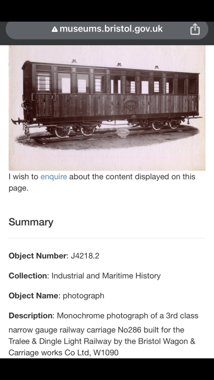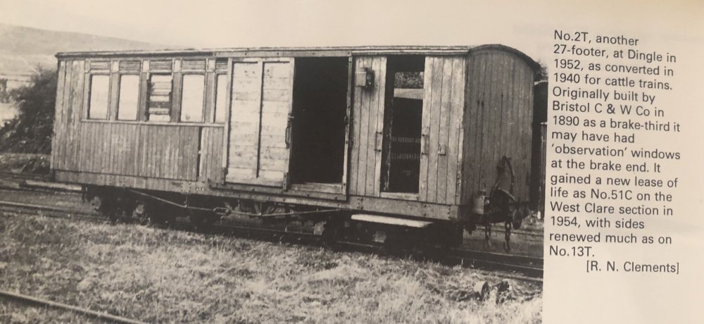 Hi Colin, You probably have these already but just on the off chance you don’t, the first three from Rowland’s book. The last is from New Irish Lines. The carriages all seem to have been made by Bristol CW & Company, and I’d be surprised if they did not manufacture similar or identical carriages for lines in Britain? I haven’t gotten the chance yet but I’ve been meaning to look into that company and what other lines they manufactured carriages for as I’d imagine there’d by way more photos for carriages of contemporary lines in the UK. And with all the railway societies, etc. maybe someone somewhere has a lot more photos or drawings of these.