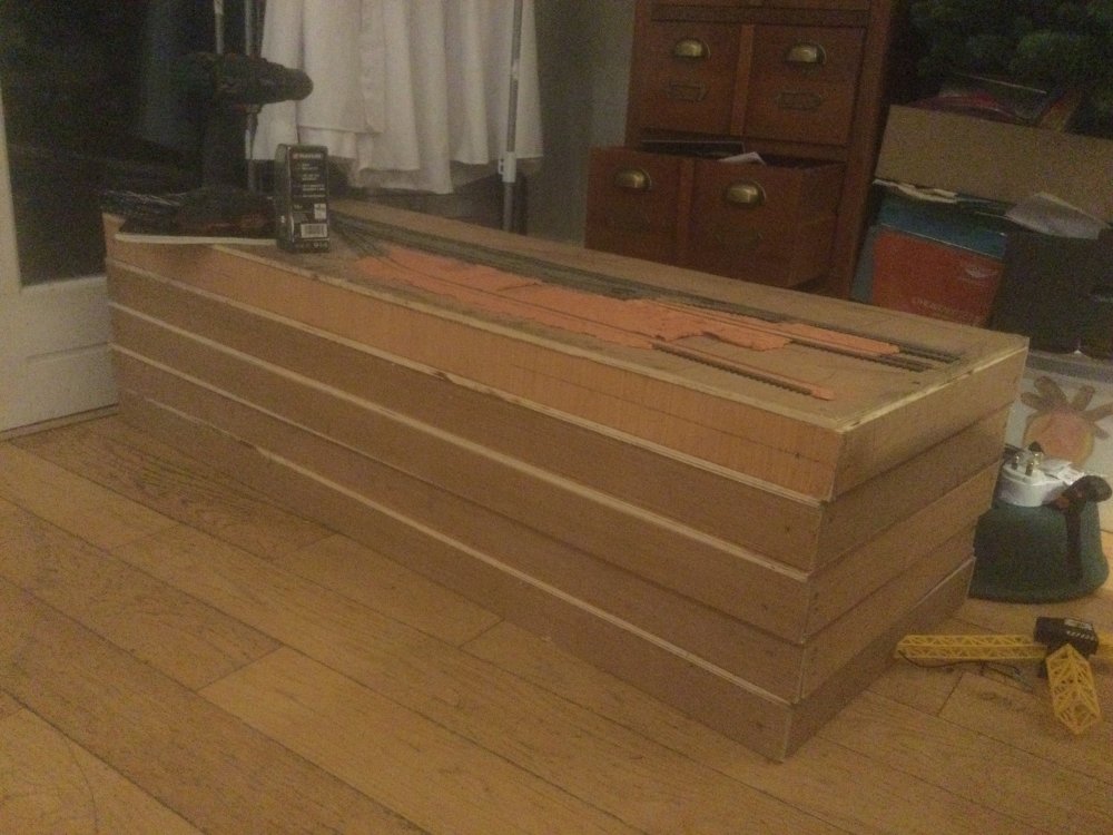 It’s all marine ply so I doubt I’ll have to worry about that- plus there’ll be cork and scenics in between the glue, water, clay, Modroc etc. and the baseboard most of the time anyway. I’ll look at cutting bracing- two more , spaced about 16” apart, per board?I will still glue the sides to the top as the waving around really does piss me off.