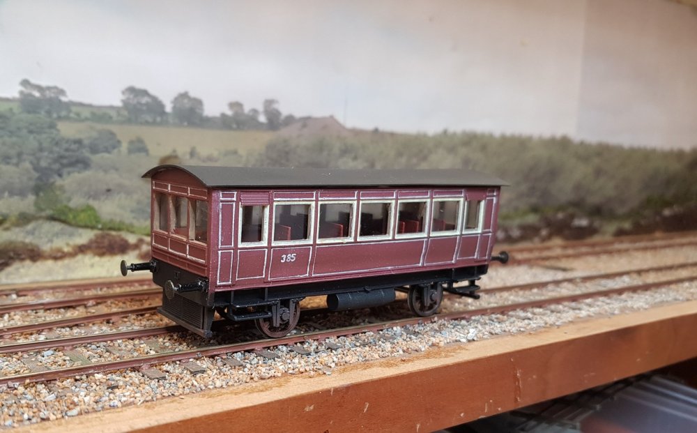 Got some painting done on the wagons. I think in need to tone down the Cattle Brake as it's a bit glossy - perhaps a little matt varnish would help. A touch of bleed through with the black on the corner, but that should clean up easily - the body paint is tough paint (rattle can RAL 3004). Lettering and numbering to follow, but quite pleased how they have turned out. They do take quite a bit of paint given the size - will need to order some more air brush paint! And an overall view; DSER branch train with loco..... Anyway, all for now, and for those going, I'll have this on display in Bray. Ken