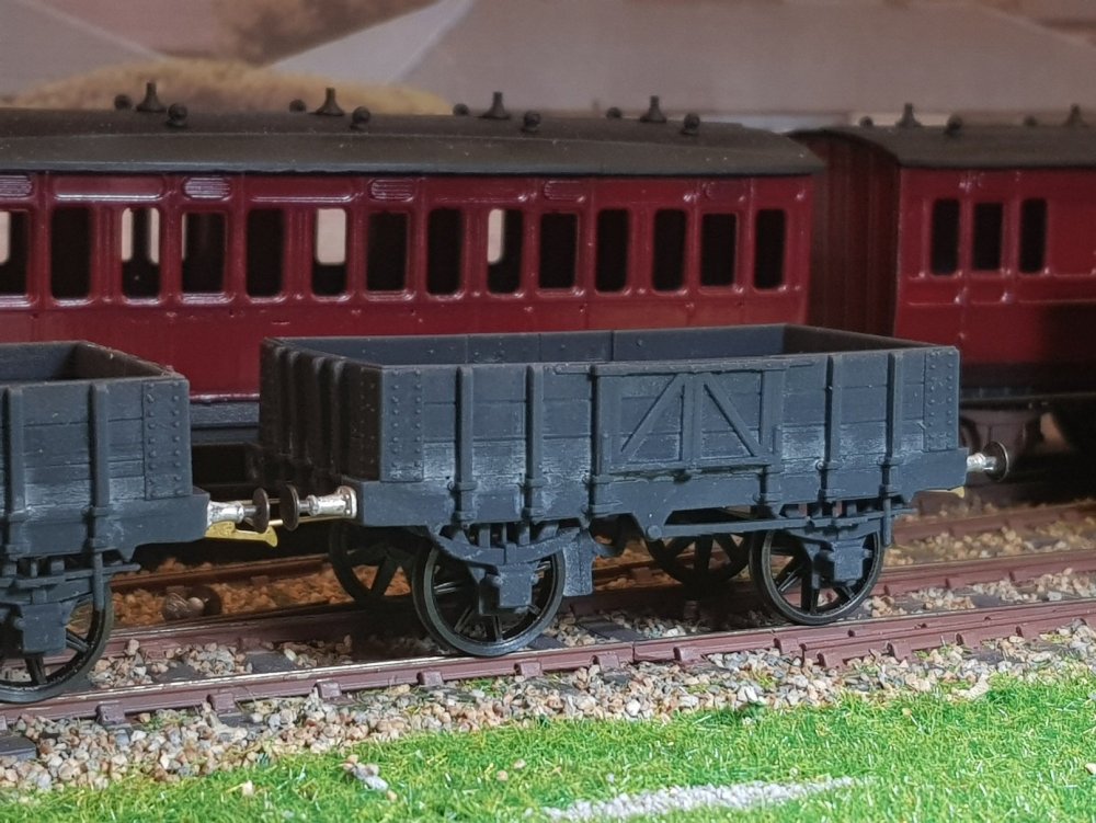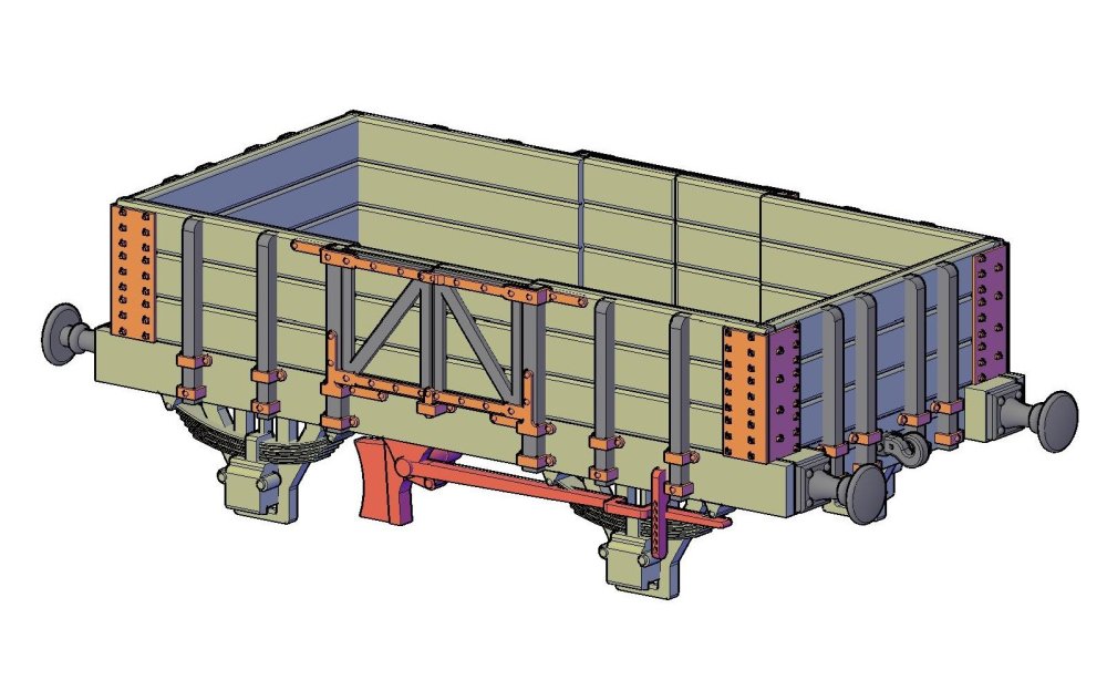 In 1872 the DW&WR ordered 40 open wagons, 20 of which were from the Metropolitan Railway Carriage & Wagon Co (MCW). In April of the same year a broken drawbar on a goods train caused a derailment at Foxrock which led to the introduction of side coupling chains. Whether these two events were interrelated is not clear, however from the drawing information I have no side chains were designed into the MCW wagons, so perhaps these were ordered before the incident. The Historical Model Railway Society (HMRS) has a drawing for this 3 - plank wagon produced by MCW which is annotated that it was for the DW&WR. The information provided on the drawing is very good, albeit a little smudged, however still in good condition for 150 year old drawings. A digital copy of the drawing was purchased with the view to creating a model. This drawing was imported into CAD and drawn up, however some inconsistencies between figured dimensions and drawn information needed to be resolved. I opted to use the figured dimensions and the drawings were amended accordingly - nothing major, but worth tidying up nonetheless. The wagon has a 9' wheelbase with a load area of 15’ 0” x 7’ 1”, so quite a large wagon for the time of construction. The earlier design provenance can be seen in the extended headstocks which look similar to dumb buffers. In line with other wagons of this era, brakes or in this instance – brake, is on one side only. Given the single brake arrangement, it is reasonable to assume these were coupled in one direction & thus brake levers would be on one side of the train in any given rake to allow banksmen to secure the train without recourse to crossing the train. These wagons were re-built in 1907 in the Grand Canal Works which transformed it completely from this characteristic wagon. The re-built version had 4-planks, almost flush doors, with door planks vertically instead of horizontally. There is an image of the re-built version in Shepherd & Beesely “Dublin & South Eastern Railways” page 107, which I will not reproduce here as it is distinctly different from this wagon. I have not been able to uncover any photos of this wagon to date, so we will have to make do with a model at this time. A 3D model was developed from the drawings above to allow printing. This printed quite well, and in OO Gauge with options we get: As noted with other models, the wagon is available in various options - for example the model below is printed with chassis & brakes only and has been developed in P4 finish to 21mm with buffers, drag hook, couplings and P4 wheels added separately. The wagon has not been painted yet, so is still with a basic undercoat: The model will be offered with various options: Basic body only Add: W frames, axle boxes, & springs Brakes Buffers Drag hook NEM coupling pocket (OO gauge) Prices: N-Gauge: € 9 - € 12 OO / P4 Gauge: €40 - €45 O-Gauge: € 80 - €85 All costs will be exclusive of shipping costs which can be determined at the time of sale and will be based on actual cost where applicable. Hope this is of interest, and if so, please reach out by PM Ken
