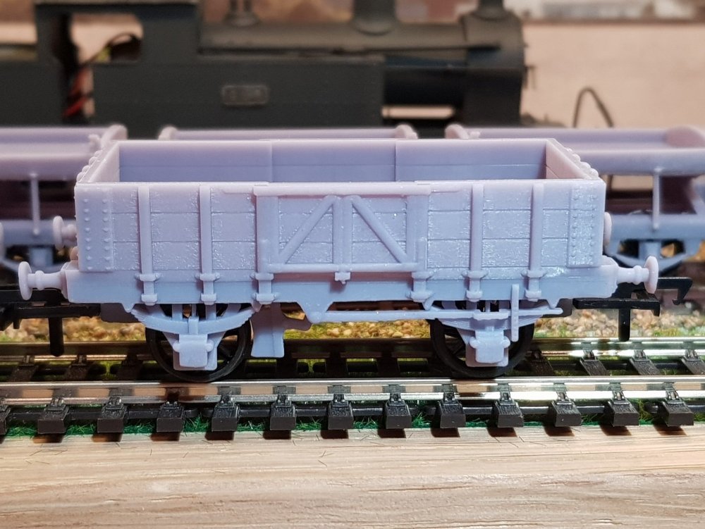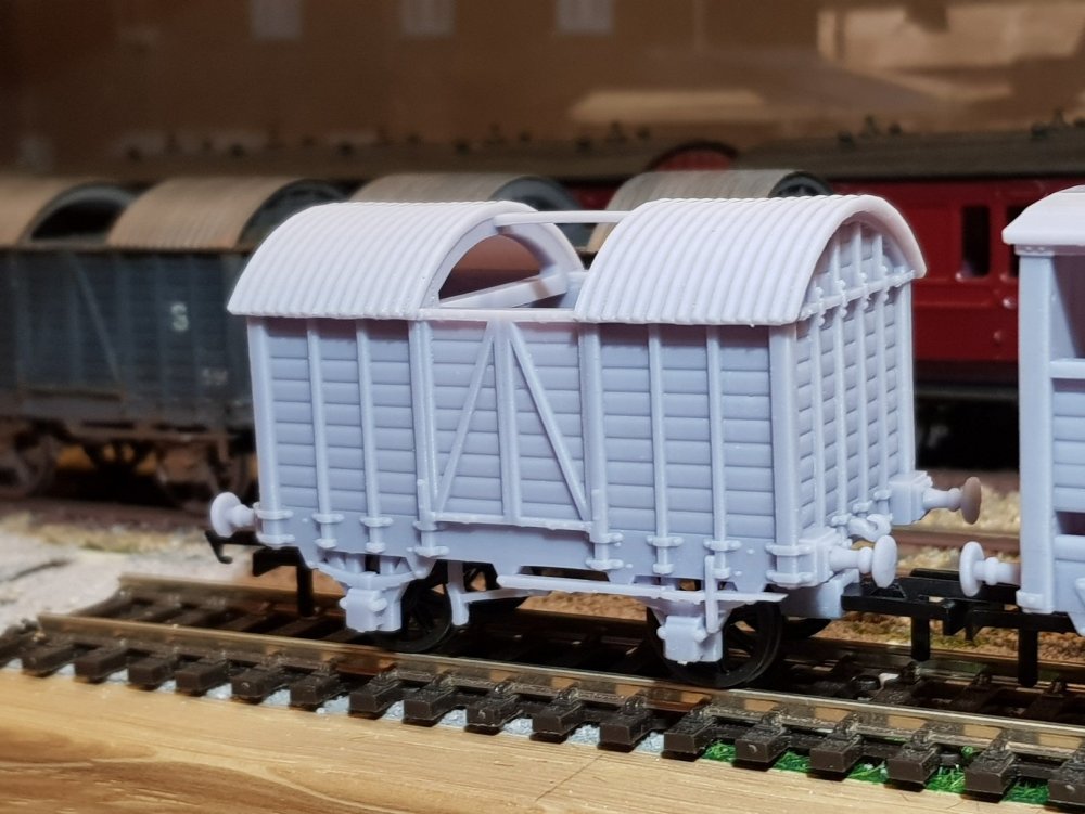 Some upgrades to the wagons: Buffers & hooks added. Roofs (different types) fixed in place, and for those OO gauge people - NEM pockets. Some OO gauge wheels added for photos. Ashbury 13'6" van. Convertible wagon with NEM coupler Cattle wagon - brass rod to be added to represent cross bars, however holes provided to ease installation. No work has been done to these wagons with the exception of adding wheels - these are literally hot off the UV curing table. Some minor tidying up of edges & support spots to be removed. The curved roofs could do with a quick sand to remove the print lines. Few issues to address: - Buffer collar behind head is too large and needs to be tweaked to reduce size slightly. - NEM pocket is slightly too high, but again this will depend on what wheels are used. Cattle & Convertible are designed for 3'6" wheels (as per prototype) and pocket will definitely need to be moved down. Not as big an issue if 3' wheels are used. Quick shot of these wagons in a small rake. Getting to a point where these can be supplied on demand if they are of interest. All for now..... Ken