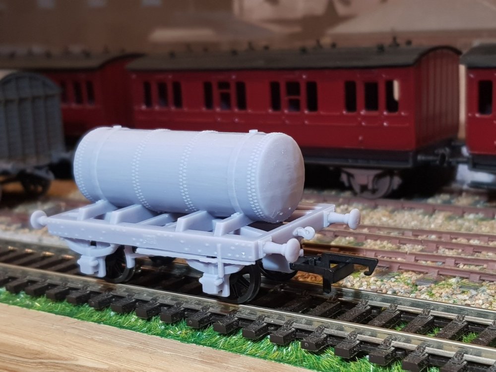 For those following the section in the manufacturers area on the gas tank wagon, I noted that I would be running some prints to establish how well the would print. Rather that clog that topic, I felt I would update progress here, as I'm not entirely happy with the print result thus far. The wagon has turned out rather well, and I quite like the open chassis look and feel. There are some striations to the tank body and ends due to the curves, so some tweaking to the slicing software may be needed to smooth this out a little better. As anticipated, supports for the tank proved problematic, particularly with the NEM pocket as it blocks access to the underside of the tank ends. The tank ends were un-supported and thus sagged away - it's not major, but takes away from the tank which is the key feature of the wagon. I may be able to get some intermediate supports between the NEM pocket & underside of the tank - a little more work in getting them out post print, however it's worth a try. The provision of holes on the underside of the tank did work out well, allowing uncured resin out. This should provide a good basis for adding weight in the form of sand / ballast & plugging the holes with wax or similar. A little more work & hopefully we can get better results. All for now, Ken