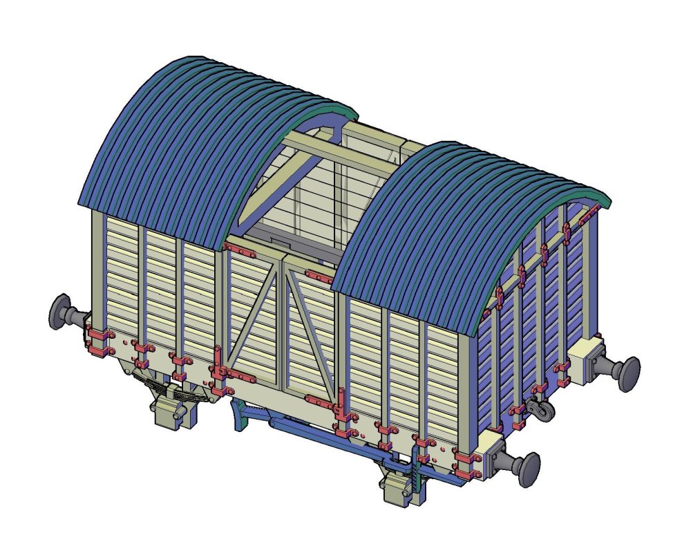 Probably the most numerous wagon over all railway companies was the convertible (or semi?) wagon, and like other companies, DWWR/DSER had their own version. This wagon was used on their network from 1855 and built for them by all the notable carriage and wagon companies over the years. These wagons were used for the conveyance of all goods, including livestock until the introduction of new regulations through the Board of Trade and Veterinary Department in 1896 which prescribed dedicated wagons be used for livestock. They had a long life and were used around the network until the end of loose coupled goods. My research uncovered drawings made by Metropolitan Railway Carriage & Wagon Co. (MCW) from 1891 sourced from the HMRS. This may not be a drawing of an early wagon as MCW were building these wagons for DWWR from 1863, however it could be seen as a development from their earlier wagons. These wagons were small with an 8’ 6” wheel base and 14’ over the body. Height wise, they were noticeably lower than other stock at c. 10’ 10”. Image courtesy of Shepherd & Beesley of 1920's rebuilt convertible wagon. An initial outline drawing was developed from the drawing correcting discrepancies between the figured dimension and drawing – nothing major, but good to tidy up. This has been developed into a 3D model As a print for OO gauge inclusive of all options, we get: As noted above, the model is available in various options - for example the model below is printed with chassis & brakes only and has been developed in P4 finish to 21mm with buffers, drag hook, roof, couplings and P4 wheels added separately: The model will be offered with various options: Basic body only Add: W frames, axle boxes, & springs Brakes Buffers Drag hook Roof NEM coupling pocket (OO gauge) So, the difficult bit - prices: N-Gauge: € 10 - € 15 OO / P4 Gauge: €45 - €50 O-Gauge: € 85 - €90 All costs will be exclusive of shipping costs which can be determined at the time of sale and will be based on actual cost where applicable. Hope this is of interest, and if so, please reach out by PM Ken