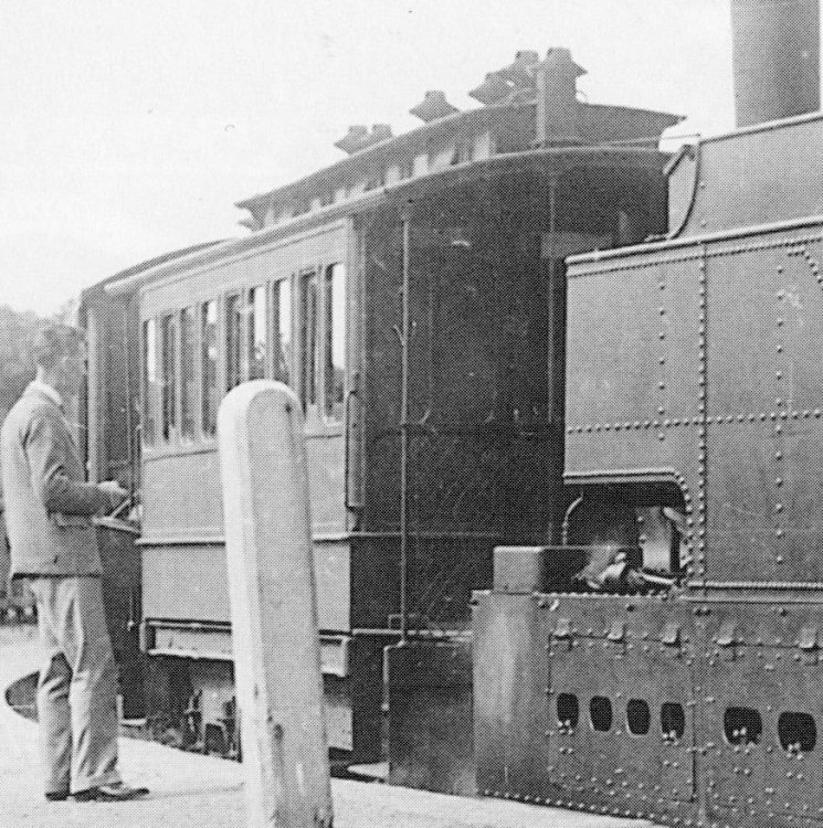Here are some scans of the better images - sorry the quality of the originals isn't always great. It's probably worth you having another read of the relevant books - at least the sections on carriages. The CVR went through several stages of carriage lighting, including oil, acetylene gas (from carbide), oil again briefly, and finally some were fitted with electric light. I suspect that some of the variations seen on the clerestory roofs aren't just ventilators but include lamps of various kinds. Oil/gas lamps would have needed some kind of vent of their own, to allow the combustion gases to escape. In the early days, oil lamps might have been prepared away from the carriages, and then put into the clerestory around nightfall, placed into holes that would be covered with a cap when the lamp wasn't there. I think this is the earliest photo and the roof details appear quite different to later images. I'm pretty sure some of these are oil lamp tops rather than vents: Most images of the first class coach(es) show 6 vents, unevenly spaced and maybe not all the same height or size. Exactly as you have marked on the Flickr photo. At the end with 2 vents close together is the square 'chimney' thing (it might not be a chimney at all) which is separate from the clerestory. It is connected by pipes (or maybe conduits) to the clerestory and to the boxy device on the headstock. This is a first class: This is also a first class: I think the next two are either thirds or compos, but they show the 'chimney', the device on the headstock and the piping connecting them. I think the box on the headstock is an acetylene gas generator for the lighting, and the gas goes up the pipe to the lamps, passing via the 'chimney' (whatever it does). I'm not an expert on actylene carbide lighting though, it might be worth a Google to see if this looks plausible.