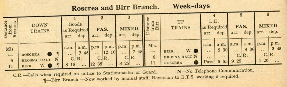 Here's the Birr branch WTT for summer 1961, with a little more activity than in 1959: I have a reasonable number of CIE WTTs if people would like me to scan any more for them.