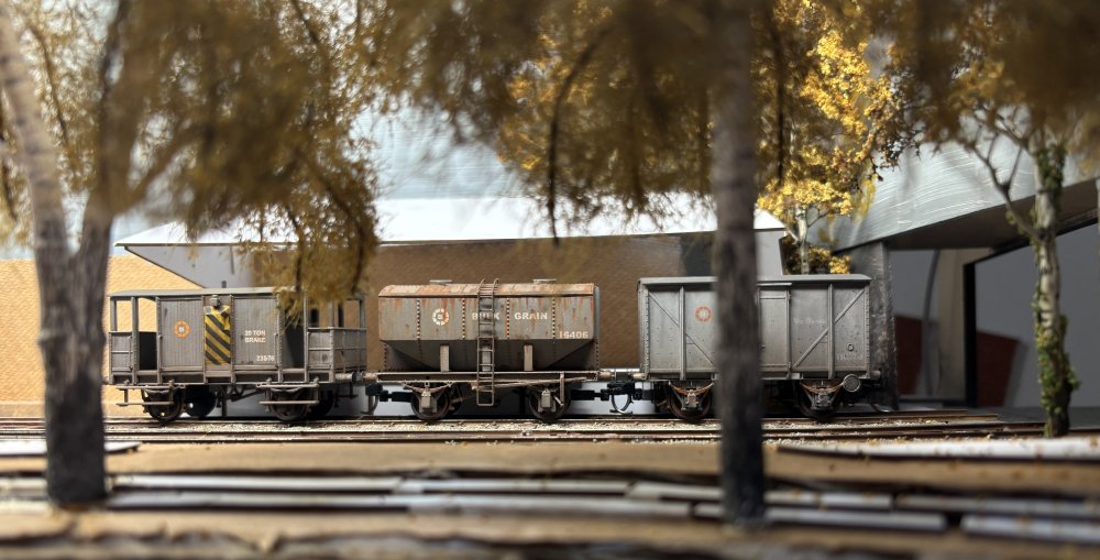 Many thanks John. I couldn't find the photo at Fermoy on NLI - any chance you could send a link? Quartertown also had two closely-spaced loading pipes, presumably to suit the two hatches on the roof of the vans - they are visible above and to the right of the bitumen tanker here and I will model these: There are some detail views of grain handling arrangements at a small Scottish silo here: https://www.rmweb.co.uk/topic/190388-br-20-ton-bulk-grain-wagons/#findComment-6001952 https://www.rmweb.co.uk/topic/190388-br-20-ton-bulk-grain-wagons/page/2/#findComment-6002589 They look similar to the grilles at Ranks Clara but arranged for rail wagons. Under the canopy at Quartertown they'll be invisible on the model from all plausible viewing angles, but I will probably represent them somehow to satisfy myself. -