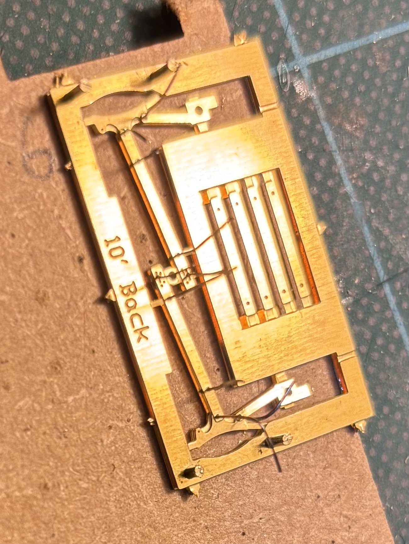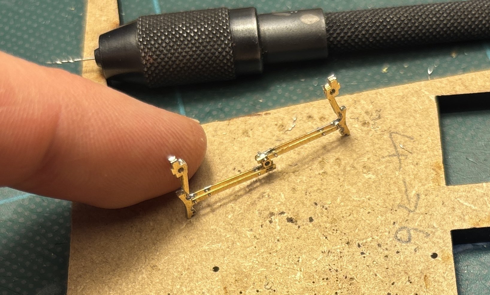 If I build a second bitumen tanker, it's going to have Irish brakes! This is an unfeasibly large number of bits to solder together for such a small bit of detail - there are 4 layers of etch and lots of tiny bits of wire - and I had to drill out all those holes! Ah well, it keeps me out of the pub... -