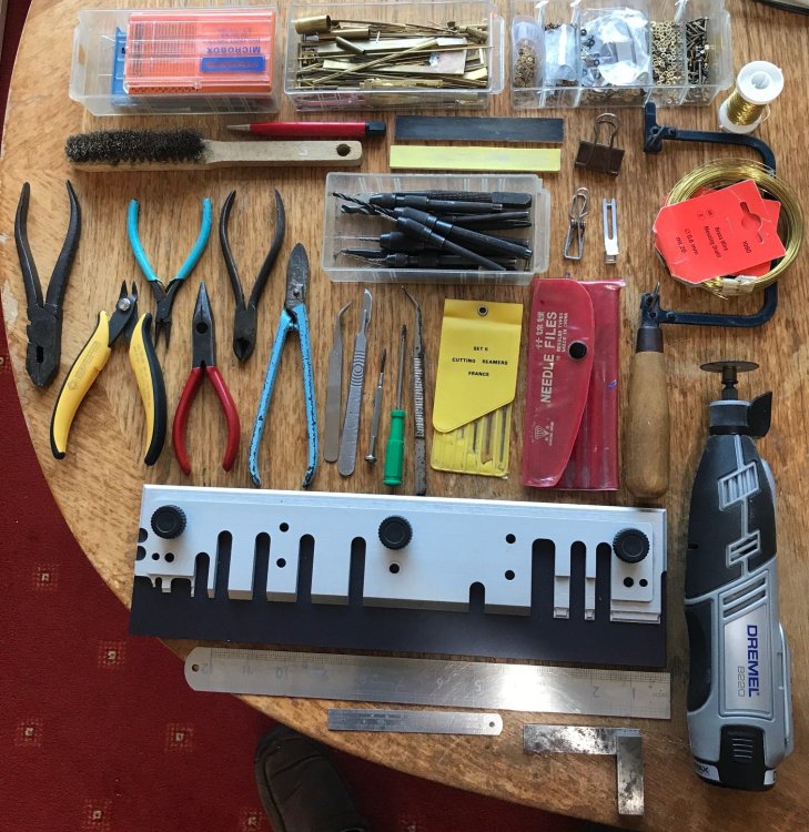 I agree with all of the above. I can't comment specifically on London Road Models kits as I haven't built one myself. You may get a better view on those over on RMweb. What I will say is that of the dozens of etched kits I've built over the years, some have been excellent, many are OK, but there are some truly terrible ones out there as well. Build up your skills with ones that people recommend as good. Soldering is a key skill, and it's well worth learning about this from books or online tutorials - whatever format suits you best - and lots of practice. I would encourage you to learn to solder first, which you can do with any old offcuts of thin brass (I expect anyone into brass kits could give you a free pack of etch fret offcuts). Don't glue the first kit - soldering is far better and it's a skill you need to learn at the start and develop over time, rather than being scared of it. The right iron and temperature, the right solder, the right flux, and cleanliness of the metal are all important. Get those right and it's easy! Different soldering jobs may call for different tools/solders etc, but for 99% of my etched kit building I use these: 25W temperature-controlled soldering iron with interchangeable bits, Carrs green flux, leaded 145 degree solder, and a fine brush for applying the flux. While we're on tools, I gathered together the tools I've used for building the E class. I think I've got most of them here: Not shown are a small vice, and an ultrasonic bath for cleaning up after each soldering session. Also various odd bits of wood etc. As you progress with building your skills on etched kits, you will gradually build up your toolkit too. And your stocks of brass offcuts, wire, small nuts and bolts etc. It's very rewarding to make a nice brass model. Start simple, gradually build up towards your dream loco.
