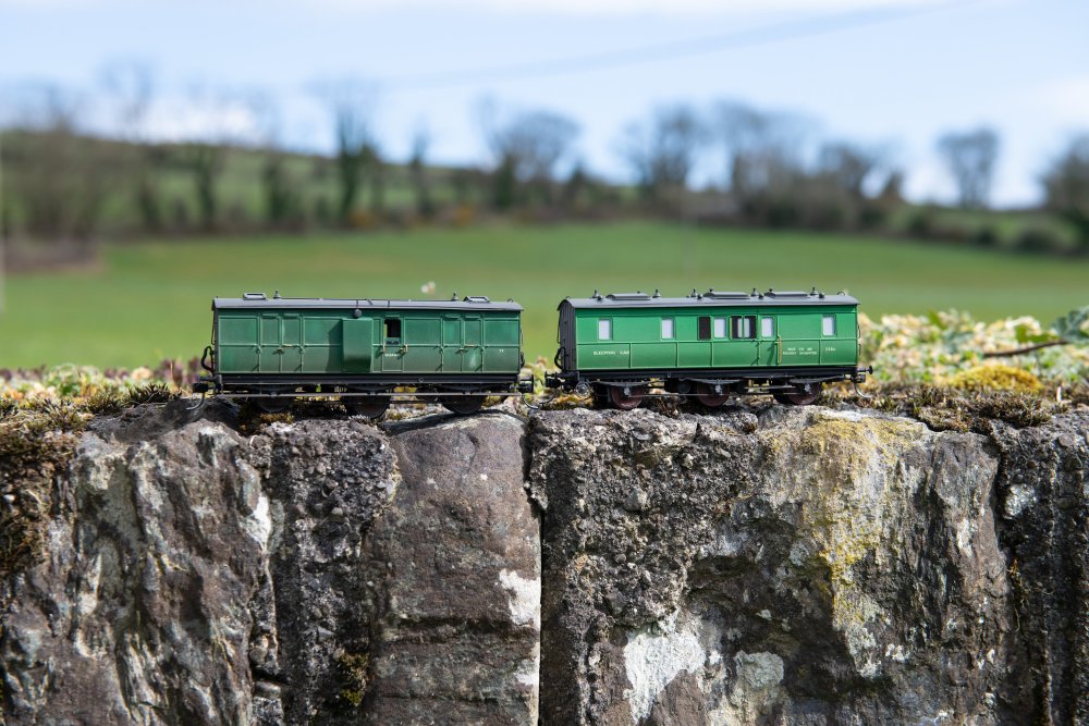 5th April 1952 and here are some freshly-painted carriages at Inchicore in 'plain dark green' livery: https://www.thetransportlibrary.co.uk/-/galleries/rail/lens-of-sutton-association/lens-of-sutton-association-irish-railways-part-2/-/medias/d694a9fe-c7f9-4823-9d78-e63ec4c947d9-cie-37m-6-wheel-birdcage-brake-third-coach-and-cie-185m-6-wheel From 1945 to 1950 CIE used the dark green with elaborate EdN lining, snails, and class digits 1 and 3. In 1950 under the new nationalised CIE board, the livery was dramatically simplified with no lining or snails, and only 1 class digits. This 'plain dark green' livery appeared on CIE's new-built stock in 1951-52 such as this composite 2135: https://www.flickr.com/photos/irishrailwayarchive/53508722781 It was also applied to older stock as seen in the first photo linked above. Seen also here, in colour, in June 1953: And here, looking a bit work-worn in 1956: As you can see, this plain dark green wasn't just a 'West Cork' curiosity but was applied at Inchicore and to a wide variety of carriages including MGWR, DSER, GSWR and CIE vehicles. The extremely plain livery was revised slightly around 1952/3 to include a thin 2" waist line in EdN, which matched the AEC railcars being delivered at that time: https://www.flickr.com/photos/irishrailwayarchive/53507832507
