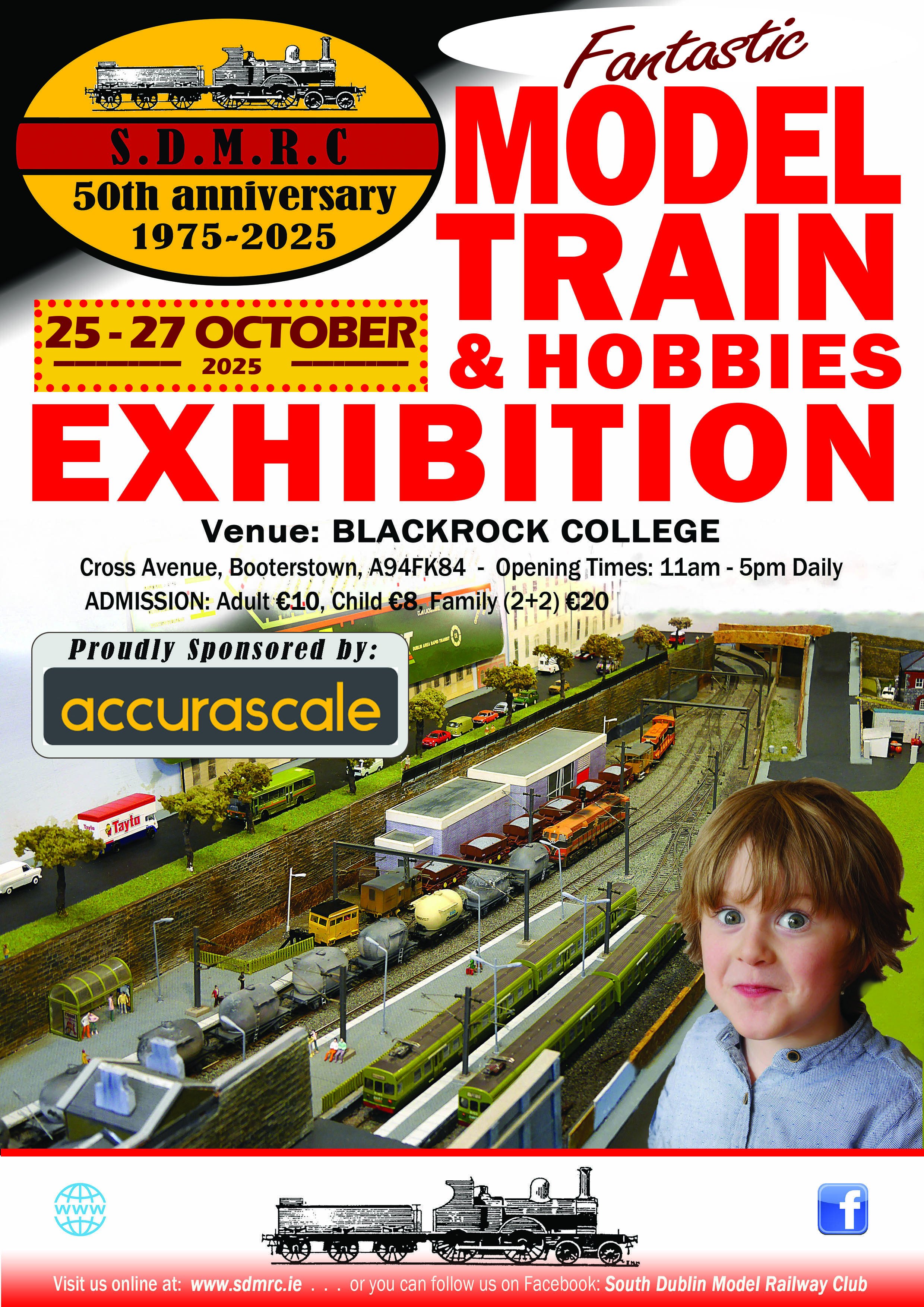 This year the South Dublin Model Model Railway Club is celebrating 50 years in existence. From humble beginnings of a few like minded individuals coming together in a members workshop in Rathmines to where we are today in our purpose built club rooms in Knocklyon in Dublin. Our Exhibition in Blackrock College this year will have added significance and we are planning on it being our biggest and best show yet. Dates of our show: October 25th,26th & 27th. Thank you The Organising team.