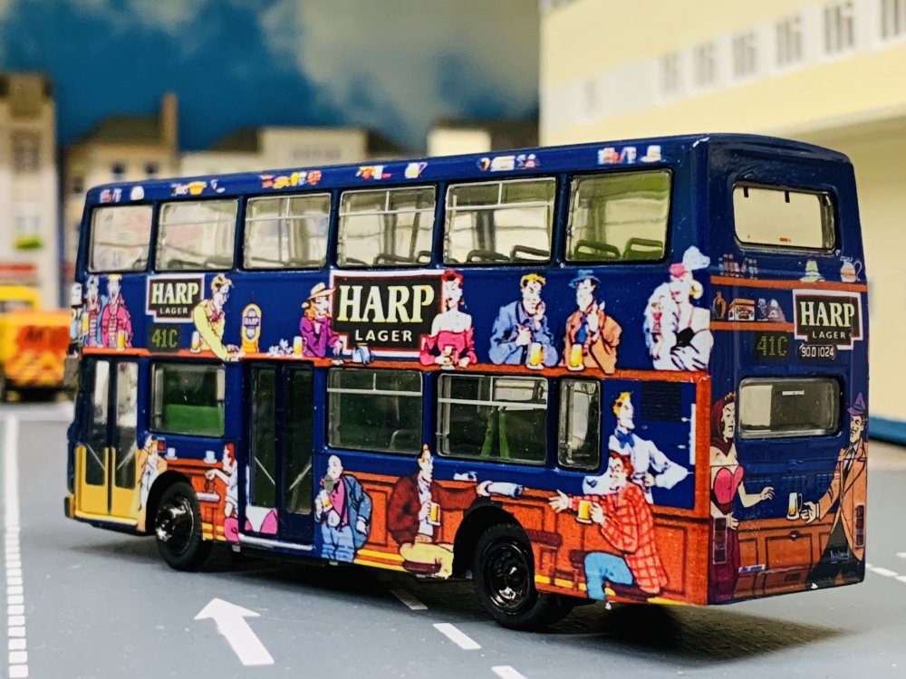 HARP Lager AOA 6 Dublin Bus Leyland Olympian’s were painted in this attractive livery for HARP Lager in 1991. 6 Vehicles from each depot (RH4, RH9, RH24, RH40, RH64 & RH65) from October 1991 - April 1992. Modelled here is RH24 from Summerhill Garage on Route 41C - RiverValley, Swords