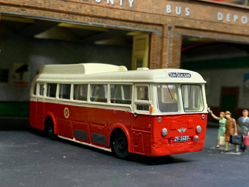 In a Hand painted Attempt to Model a More “Bockety & Battered” AU as some had flashing and Bumpers removed in later life. Modelled here is Ex GNR Regal CIE AU343 (ZY1683) on a “Dun Dealgan” Service *Super Smooth 3D Printed Kit by Tiny Model Bus & Coach**