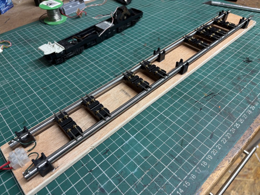 After all these years I thought it was time I got myself a rolling road for testing locos. But damn they’re not cheap! But I managed to pick up a few sets of rollers from Temu for small money. Then I kitbashed the rest from a steel pot stand from Ikea. Works just fine…..