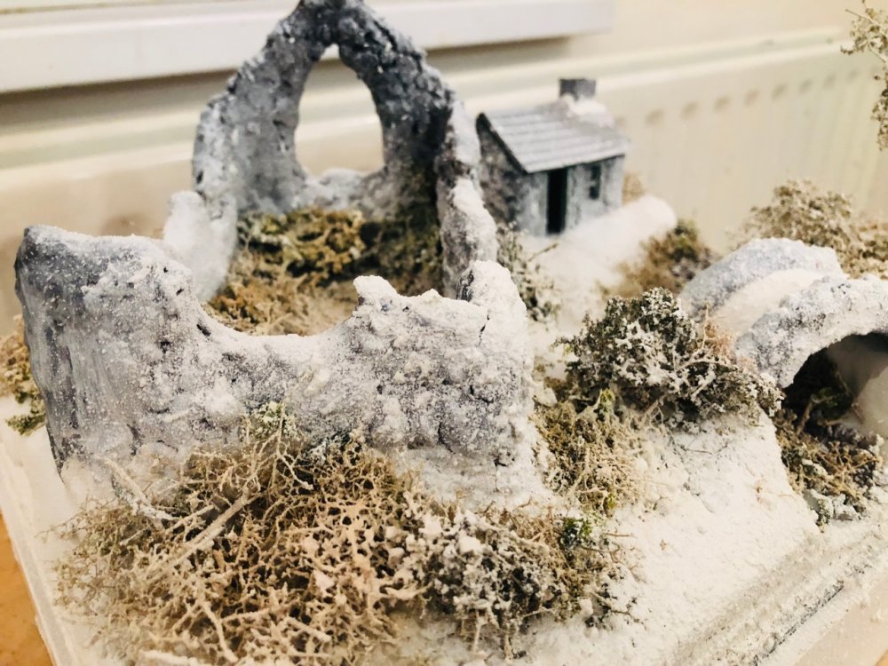 Lighting installed - comprises two cordless lighting strips which are USB charged and attached to a magnet affixed under two short pieces of hardboard, angled slightly upwards. Looks fine here but it remains to be seen if it is sufficient for an exhibition.  There are ‘warm’ and ‘cool’ settings too which make for a bit of variety. The 'cool' light setting: The 'warm' light setting:- 613 replies