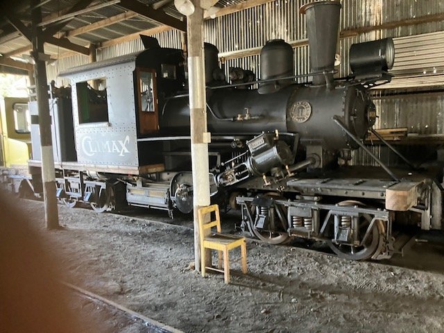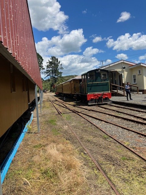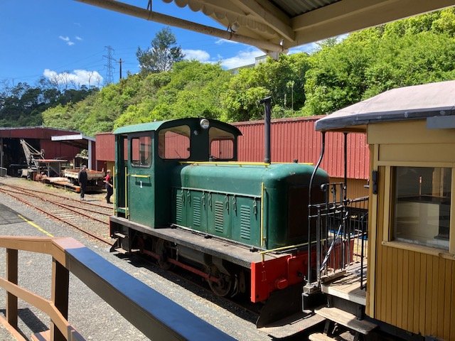 Although I have visited in July, I managed to make time to have a decent look-around on todays operating day just over two years since my original post. A local Morris owners group had shown up for a Sunday afternoon scenic tour of the district, I ended up behind a Morris later in the afternoon doing very well on one of our steep and winding country roads (2lr light SUV vs 1950s 1lr light saloon w rear wheel drive! Although the Pukemiro Pecket was in steam in its usual place today was a ' Diesel Day" seemed a quiet day with relatively few visitor around possibly the good weather. The Pecket was originally owned by the Pukemiro Coal Company used to haul trains to and from the mine and the Junction and only capable of hauling one coach on the steeply graded ex NZR (New Zealand Railways) branch line. The "Price E Class" was a New Zealand design of geared locomotive for Bush (Logging) Lines basically a cross between a Climax Locomotive with its angled cylinders and a Heisler with coupling rod drive to the driving wheels. Both types operated in NZ before Price develoiped the E Class! Loco is cosmetically restored! Train was made up of 2 coaches topped and tailed by a pair of Drewry 0-4-0 locos (similar in outline and desighn to a scaled down Drewry 04!) The pair originally operated at a local coal fired power station. A curiosity recently (ish) installed 1/2 round sleepers on a siding, rectangular sleepers on main line and loop. Recently restored Climax 1650 in the loco shed, yellow loco is a Battery Electric once used at a Hamilton dairy plant, restored with a cab extended to carry passengers. On busy Operating Days various 'jiggers" and or the Battery Loco are sometimes used to provide rides up and down the yard. -
