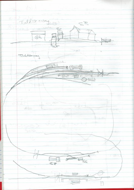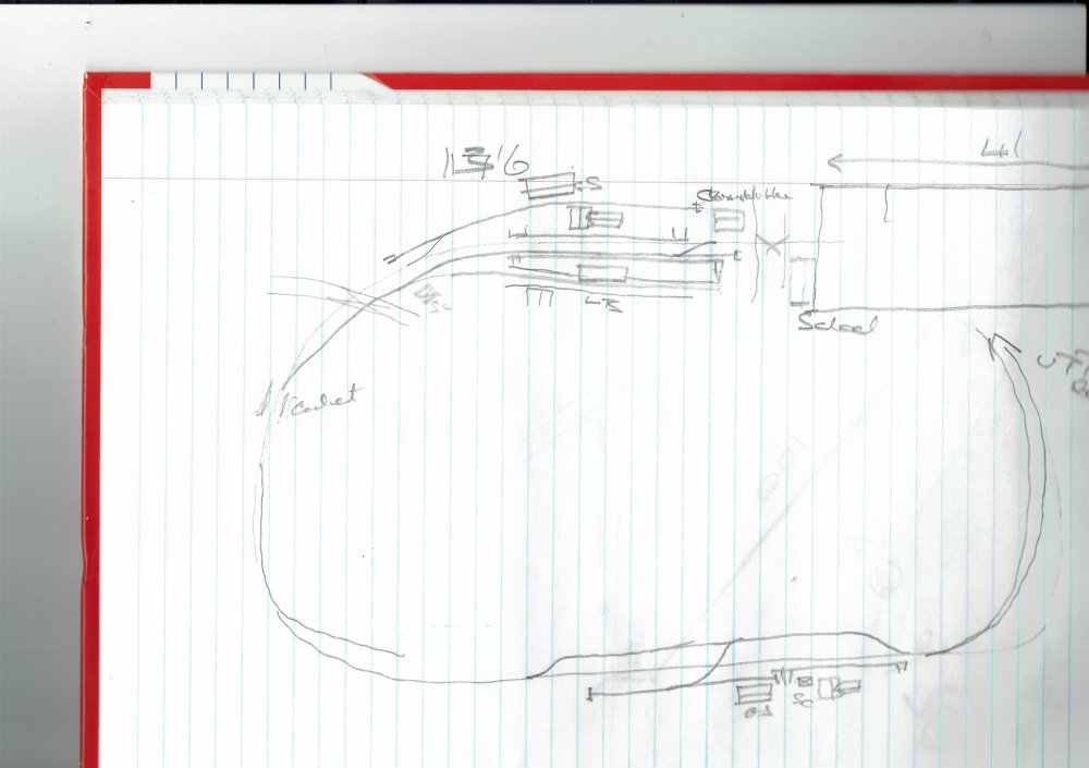 I came across my planning notes from around four years ago, it looks like I considered a multi level end to end layout and a layout with an island in the center of the room before deciding on a single level U shaped scheme. I tested the center island concept by dividing the with of the room into 1m units based on a 900mm minimum radius & 100mm min distance from the edge of the square, I later prepared a scheme using 1136mm squares based on a minimum radius of 1000 for 21mm gauge, with a minimum aisle width of 500mm. I abandoned the center island concept as my workbench occupies the centre of the room. The main station in the initial plan was based on Kiltimagh, the second a typical of smaller stations on the Limerick-Sligo line with a goods loop and single siding, though the diamond crossing crossover arrangement is similar to Ferbane on the Banagher branch, at this stage I still seem to have had fantasies about an upper level. Kiltimagh did not work visually in the space available with most of the yard hemed in between the two level crossing gates. I eventually looked at Tubbercurry which appeared to be a better fit for the available space & the bonus of a loco shed and turntable, Ballingarne Junction seems to have slipped into the plan though I don't remember if this was intended to be part of a multi level or island set up. Hopefully I will find time during the next week to draw out the block plan for the folded 8 scheme to scale to see if the concept can be made to work in an Irish context., I may need to widen the baseboard to fit a hidden line into the area behind the main station.
