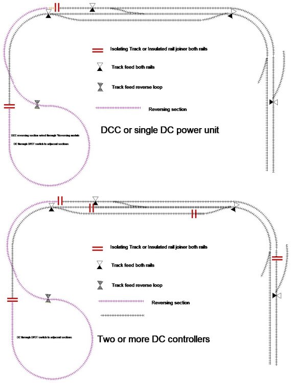 I like the reversing loop quite popular for city terminals in layout plan books of the 60s-70s era. One of the biggest advantages of setrack is that you can test a track layout to check that it meets your needs before you finalise the design. Usually reverse loops were wired through a DPDT switch to the adjacent section or a separate controller with isolation gaps (Isolation track or insulated railjoiners at both ends of the loop or isolated section) Gaugemaster recommend a min of a train length for DCC. One of the advantages with DCC is a reversing loop can be controlled by a 'reversing module" which allows a train to run round the reverse loop and on to the rest of the layout without stopping. Gaugemaster have published some useful info on wiring reverse loops both for DC & DCC.https://www.gaugemasterretail.com/rightlines-article/reverse_loops_part1.html I would recommend installing more track feeds if you are powering the layout with one analogue DC controller and additional section breaks either with Insulation Tracks or Insulated railjoiners if you are thinking of adding a second controller. https://www.gaugemasterretail.com/rightlines-article/layout-control-and-common-return.ht The sketches are for the track feeds and isolation breaks for the main elements of your layout and buillt on experience having built both analog and DCC layouts.