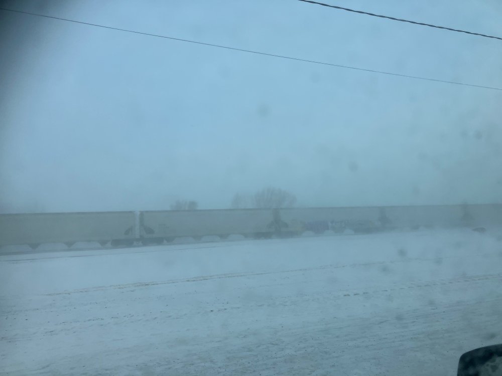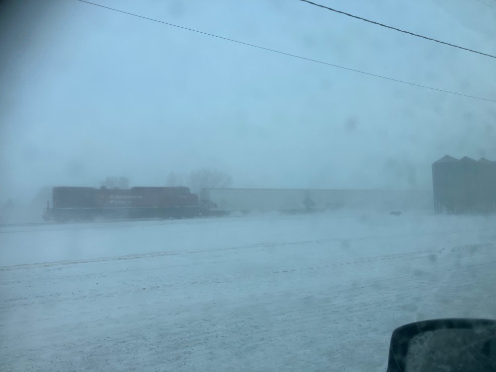 My first train photos of 2025, been a bit cold so far for lineside photos. But heared the whistle of an Eastbound CP fraight as I returned home from the grocery store. I didn't get a photo of the head end power as I struggled with the screenlock on my iPhone but managed to catch the tail-end power the majority of CP & BNSF through freights in this part of the World are now run topped-& tailed Fairmount looking West Demson Grain Inc elevators in distance. Oil Tank cars set out on spur for/from local oil terminal. Line in centre of photo is spur connecting CP (Soo Line) with local fuel and fertiliser terminal. 20 or so years ago an 'old man" lived in a dilipadated two storey house and had a vegetable garden in the area between the trees, these days the remains of his cars/trucks and furnace (heating boiler) remain. Fairmount looking East. Grain terminal which includes original Elevator occasionally dispatches grain by rail. The original CP Depot is likely to have been in this area, tank cars on through freight barely visible. Centreflow Hopper cars in through freight. Designed for carrying lightdensity products including plastic pellets. Tail end power a General Electric 4400hp+ unit which has tended to be the main stay of motive power on the CP/SOO line in this area during the past 20 odd year. The ex-SOO line is fairly easily graded with a single large GE unit heading most trains, biggest change during the past 20 years has been the conversion of the SOO line from unsignalled 'Dark Territory" to CTC & the running of less frequent heavier freights following the introduction of "Precision Railroading" where freights run to a schedule as opposed to 'Extras" based on traffic/customer demand. In unsignalled 'dark territory" trains movements were controlled by TWC where instructions (Track Warrants) were transmitted by radio by a Dispatcher to Train Crews an updated version of Telegraph and Train Order control of the 19th Century. TWC was excellent for enthusiasts listening in with a radio scanner as not only could you find out what trains were running, but also loco number, engineering posessions, train crews and dispatchers.