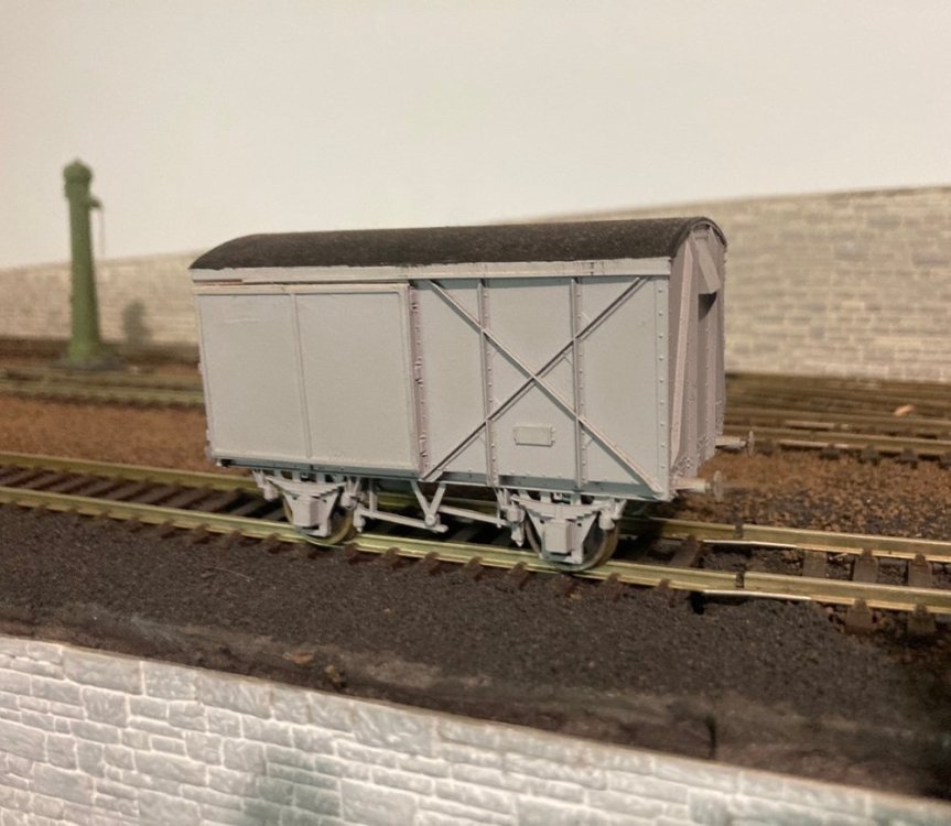 J M Design and Leslies sales in terms of the numbers of individual wagons sold are likely to be insignificant in terms of IRM sales of individual wagons. Going back to the CIE Palvan in the absence of a rtr model, a reasonable representation can be constructed from the Parkside Dundas kit and some plasticard. The prototype vans used a version of the Bulleid Triangulated underframe but with running and break gear similar to the Parkside model.