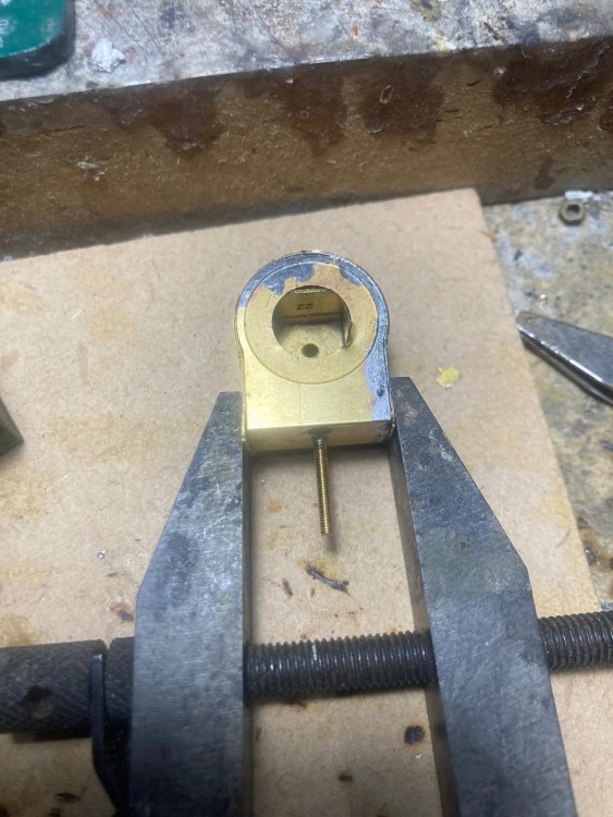 Back to work on the MGWR 2-4-0 now that work on 98 is complete until I find her tender wheels. The 2-4-0 is based on a loco that was re-built with a superheated boiler in 1924, received the original type saturated boiler in 1930 before being fitted with a Y Type GSR superheated boiler in 1935, before going two further boiler changes before the loco was withdrawn in 1961! 650 in early GSR condition with canopy cab superheated roundtopped boiler with extended smokebox and Inchacore pattern chimney. The loco would have been fitted with an extended smokebox to accomodate the superheater header when re-built in 1924, its unclear from photos whether the loco retained the extended smokebox when it was fitted with a saturated boiler in 1930. Photos of the actual loco are basically 3/4 views from the front and rear, though the smoke box is straight sided without the small flare visible in 3/4 front photos of superheated members of the class MGWR 2-4-0 as rebuilt with canopy cab and superheated boiler with extended smokebox. Originally assembled as a test build, I have replaced the boiler/firebox and splashers with updated parts. MGWR 2-4-0 rebuilt with canopy cab, saturated boiler with riveted version of standard smokebox. The pewter castings require cleaning up! I designed the kit to be assembled either in saturated or superheated form including a set of smokebox parts that could be assembled in its original flush or later pop riveted versions (embossed rivets) I originally planned to emboss the rivets using a rivet press, but turned out simpler and quicker to use a simple riveting tool I bought from London Road Models at a UK exhibition many years ago! I used a small Tool Makers Clamp to hold the wrapper in position as I soldered it to the smoke box former gradually working around from one side, dressing to the profile of the former. The moment of truth wrapper to the smokebox former before making the final soldered joint.