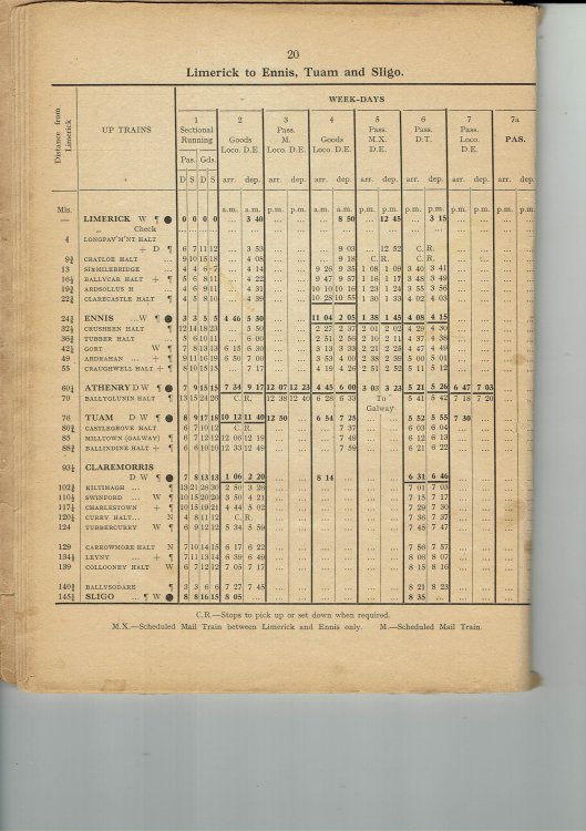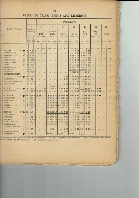Its likely that some of the criticism of ex-Midland locos in the GSR/CIE as sluggish and poor steamers may have been due to the lack of familarity with Midland locos on the Southern and at Inchacore. With a few exceptions ex-MGWR 2-4-0s on DSER and Bray Suburban trains, a pair of 0-6-0s a Standard Goods and a Cattle engine on loan to Waterford for the Beet Season and the successful use of ex-MGWR Cs Class 4-4-0s on Kingsbridge-Nenagh-Limerick trains during the 1930s, ex-MGWR locos worked the majority of goods and passenger trains on the Midland until displaced by railcars and diesels. Jack O'Neil describes his first 1946 run as a fireman on 540 assisting the down Galway Mail from Mullingar to Athlone, talks about the rough riding (Woolwich Moguls also had a bad reputation) advised if he had false teeth to take them out when getting on! Described the loco as free steaming and easy to fire and a steady runner until "notched up beyond 65%" (worked hard) Jack's last fired one of the Class "being worked to death" on DSER suburban service "until no longer safe to be on the road" in 1954 . Also notes a high speed (70max) 1954 run with 543 on the "Caddagh" (Dublin-Galway via Portarlington) a precursor of the Cu na Mara" railcar express of the 50s and 60s and a 1939 run on a Limerick-Kingsbridge via Nenagh with 60mph running. The MGWR large 4-4-0s appear to have been designed as mixed traffic locos capable of hauling heavy passenger and livestock trains, the locos had smaller 6'3" driving wheels and the valve gear was set up differently to the GSWR 6'7" 4-4-0s which were designed for high speed running on the Cork Main line. The MGWR 4-4-0s would have had to be worked harder to achieve a similar speed which would have also increased maintenance costs. It likely that overloading and a backlog of maintenance became a significant problem during the CIE era as train frequencies were reduced in an attempt to control CIEs worsening financial position and overloading was identified as a significant problem with the Woolwich Moguls and rebuilding of some Moguls as 4-6-0s Woolwich cylinders and motion, 400 Class boilers was actually proposed -