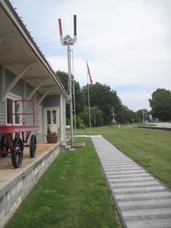 I did not get much of an opportunity to check out the local railroads during our stay in the Blue Ridge Mountain Foothills in North Carolina, but managed to check out a couple of towns on the disused Norfolk Southern ex-Southern Railway Saluda Grade Line and managed to sample some genuine and very good moonshine. With its mild (by US standards) climate the foothills has become a haven for retirees from the big cities of North East and Mid West and Climate Change refugees from California and Florida, the CBDs of the smaller cities (villages & towns) have been nicely restored for tourists and out of Stater's in contrast to the more work-day cities where business has shifted from the CBD to out of town malls and shopping centers. The Saluda Grade was the steepest grade on a US standard gauge main line at 4.7% or 1:21 and has been out of use since 2000 after Norfolk Southern diverted through traffic (including a 12,000Ton coal train) to other routes. My first glimpse of the route was the restored Depot at Landrum South Carolina, the City (Urban District Council) bought and restored the Depot as a Civil Centre after passenger services ceased during the early 70s The Depot appears to have been recently renovated as a function venue, though restoration work on the coach appears incomplete. There appears to have been great local pride in the Southern Railway and the amalgamation with Norfork and Western to form NS not exactly seen in a positive light! The Train Order Board(not a signal!) was probably erected for show, the Southern converted the Saluda Route to CTC control with colour light signalling . Telegraph and Train Order operation became obsolete and the role of the Station Agent redundant with the introduction of Track Warrant Control in the States during the 1980s/90s with Train Crews communicating directly with the Dispatcher (Train Control) using two way radio eliminating the Stations Agents role. Saluda at the crest of the grade is an almost perfect example of a city with the business and residential districts on opposite sides of the tracks and would make a visually interesting model in its own right The Depot was relocated from its original site and re-located and re-purposed as a museum in the CBD, the city centre buildings are similar in style to building kits available from Walthers, Kibri and Design Preservation models, the steep wooded hillsides are best modelled in poly foam with specimen trees in the foreground. Saluda Historic Depot Museum the depot is similar in architectural styling to surviving Depots at adjacent Towns, Landrum appears to be an exception with its simpler roof design. Main Street USA? The crossing signals are tilted upwards out of use. Visual quailty is not great, but a taste of the challenges of operating 13,000 Ton Coal Trains on the Saluda Grade Line in Southern Railway days during the 1990s, the Southern and Norfolk and Western preferred to run their freight diesels "long hood forward" apparently to provide better crew protection in grade (level) crossing collisions. Four locos on the head end, and three radio controlled mid train helpers.
