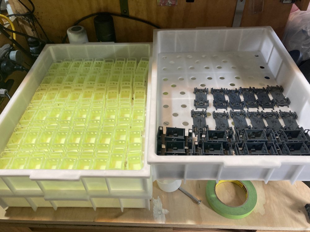 I thought it best to provide an update on our current projects in a single post. OO Gauge CIE 20T Goods Brake. The first batch production vans arrived from the printers and are currently working their way through the paint shop before going to the printers decals and lettering. This batch of bans will be produced in the as introduced late 1940s dark grey with snail and stencil lettering and is basically to test whether its viable to produce rtr wagons using 3D printing technology with finishing and assembly in house. We expect to set a price point and release the first batch of vans at some stage in June 2021 subject to the arrival of wheels from our supplier in the UK. Receiving inspection Work in progress 8 Apl Spray booth not quite a Chinese factory. D17/52 Class locomotive kit. Although the majority of the kits have been pre-sold a small number (2) are currently available at $290 NZ + shipping. The kit was largely feasible as a result of the assistance off Studio Scale Models who agreed to supply their J15 castings and GSWR 1804 gal tender and we are unlikely to re-release the full kit once the current batch is sold out. Although we have got the etchings and castings in stock the release of the kit is likely to be delayed until July/August as a number of small detail parts such as handrail knobs are currently out of stock with our suppliers in the UK. CIE Tin Van, Hooded Van and PO/Tool Van Kits. The cut off date for accepting orders on these kits is the 28 April for supply of the kits in August/September 2021. We will be proceeding with the release of these kits in August 2021 although a number of customers who placed expressions of interest have not confirmed their orders at this stage.