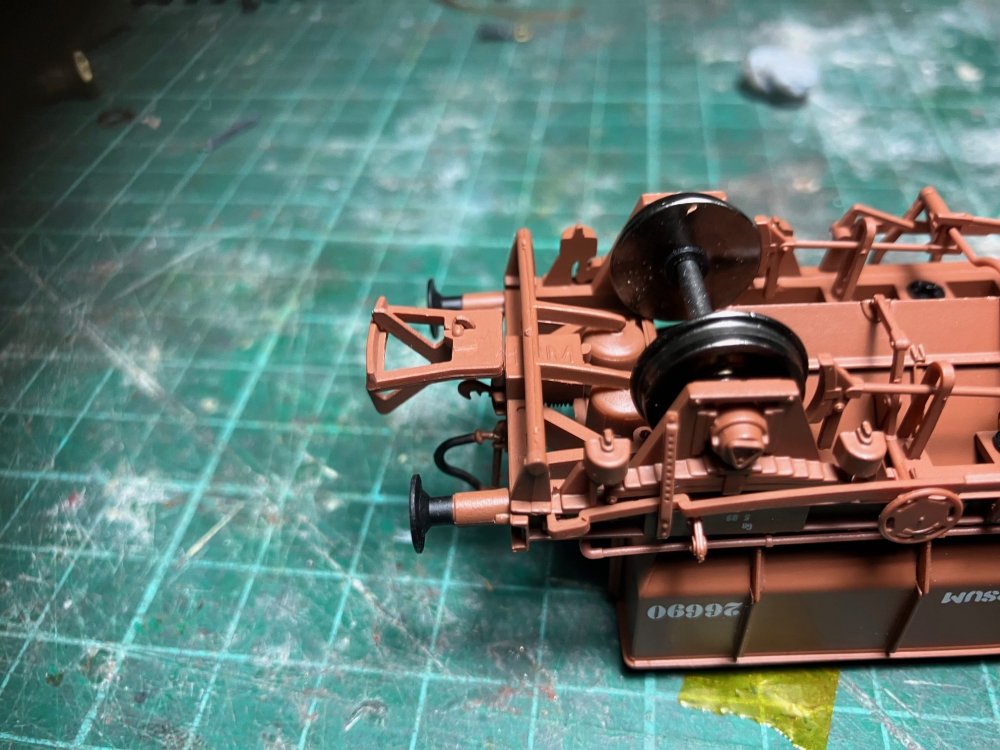Alan, worked out quite straightforward in the end, the Hi Level gearboxes were self jigging when assembled, only significant modification was to cut away the surplus metal in the now redundant motor mount and to get my head around the idea of using the rotating layshaft as a pivot for the rocking axle/gearbox. The system is the same in principal to the motor, layshaft and gearbox arrangement used in a lot of RTR N and narrow gauge locos. I will probably use the same arrangement if I ever get around to assembling the 21mm gauge chassis supplied with the original Worsley Works G Class and a D401 if I ever get around to it. Reducing the thickness of the axle bushes and careful adjustments of the B-B transformed the running of the loco, better hide that OOF B-B gauge when using Bachmann or other RTR wheels. Interestingly I had a similar problem years and years ago after I picked up a job lot of PC models coach wheels (cutting edge 4mm kit manufacture) wheels were very nice with a narrow thread but a narrow wheel profile, had to vary the B-B for the wheelsets to run reliably.