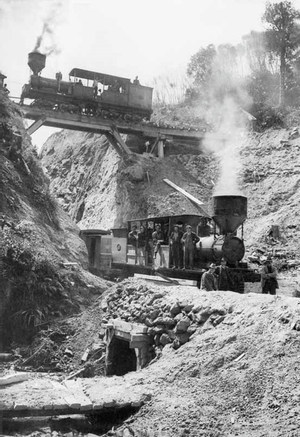 Thursday Walkabout on the Main Trunk LineMayner replied to Mayner's topic in Photos & Videos of the Prototype Some more odd-ball stuff. I planned to build an American On30 narrow gauge layout in a garden shed/garage and set up a mock up of one line crossing above another without realising there was once a similar arrangement on the Ongarue Bush Tramway in King Country Bush Tramways or logging lines tended to use a mixture of American and locally designed geared steam locos but no Shays. The locos in the Ongarue photo are AG Price 16 wheelers which are similar in concept to the Type A Climax with the weight spread over 4 bogies or trucks. Although I had a space of 24X12 the On30 layout never got beyond the planning/mock up stage and started to build a permanent American N Gauge layout with a center island as I felt the On30 did not work out in the available space. The Taupo Totara Timber (TTT) company operated the 80Km Mokai Tramway between its mill at Mokai north of lake Taupo and the New Zealand Railways Rotorua Branch. The tramway was worked mainly by Heisler geared locomotives and a Mallet operated through remote country with challenging civil engineering including a corkscrew section and a large single arch bridge over the Waikato. The tramway struggled financially through much of its existence, the bridge got into poor condition and was replaced by a steel structure in the 1930s. The Corkscrew. Most of this area was converted to plantation forestry from the late 1930s a 30Km section of the line was upgraded to serve a pulp and paper mill in the late 1940s after the tramway had ceased to operate, sections of tramway are in use as private forestry roads.