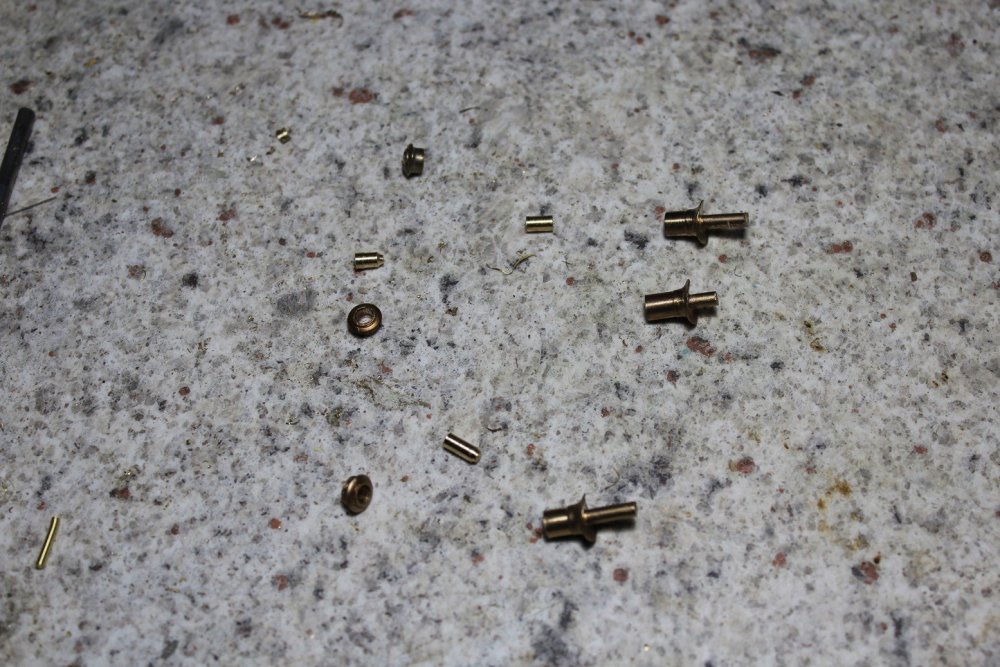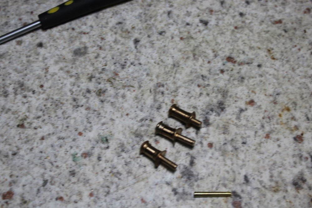 Completed the final patterns for the Y Boilered 650 Class today, short GSR "built up" chimney and turnings for vacuum relief valve and whistle, these will be used to prepare moulds for brass castings. The model is based on a loco running in the late 1930s which still retains the mountings for the original laminated springs on the leading axle. Rather than produce a complete new master for the chimney, I cheated by slicing the top off and existing chimney, reducing the height of the straight part, turning an insert to fit inside the chimney and re-joining with loctite Sliced and diced chimneys. Re-joined