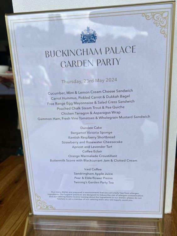 The local RNLI were asked over to Buckingham Palace in recognition of their fund raising efforts over the last 30 years. The raft races organised are great fun. Anyway this was what was on the menu at the Big House for those in attendance.