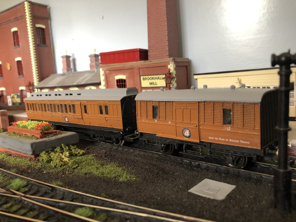 Some of you will have seen this beauty on "Dugort Harbour" this afternoon. It is a trial 3D print from KMCE Models, which Ken has kindly asked to me to test and trial. I was aware that this has been in development for some time, and the finished result represents the first purpose-made, ready-to-run Irish 6-wheeler evfer in 00 scale (or any, for that matter). It runs on a 3D-printed articuloated chassis which Ken has developed and which runs very well. It was suggested that a very light drop of oil on the central moving part of the chassis might aid operation, so I initially decided to test it without, just to see what happened. The print is extremely well executed, very sharp indeed, and hardly surprisingly it performed perfectly - without oil. I have both hauled it and pushed it, over medium radius curves and points. I don't have anything short-radius right now, though I will eventually have one quite sharp curve, so I will take it to visit a friend's layout in the next week or so, and I will report back here how it goes. This is a truly excellent model (not just because it has correct GSR maroon!), and far exceeds my expectations. The first two wagons behind it are also KMCE products - DWWR vans of two of the different varieties offered. I already had some of these - again, early pioneers - and excellent ones too - of genuine Irish pre-GSR types. The sort of turn-of-the-20th-century scenes so ably captured by the late Richard Chown, much discussed here; and our own Galteemore, Mayner and David Holman, may now be played out in 00. Add to that the Provincial Wagons models of earlier prototypes, like the GSWR guard's van and his older convertible and cattle vans, and we now have the start of a credible range of 1910-1950 stuff - and not before time! I am delighted to hear that Ken is considering some other variations on the theme - a DSER first class coach, for example, and others. These will be complementary, rather than "in competition with" the Hattons CIE coaches. I had requested the above in GSR maroon, but there is no reason why it should not have been finished in the older (darker) CIE green, as some of this type lasted until the late 1940s. As an aside, there seems to have been a pogrom of DSER stock in 1949-50, so I'm pretty sure no DSER six-wheelers lasted long enough to have the lighter green; but a layout based in the 1945-50 period can have a mix of GSR maroon and dark lined green, and including both GSWR (Hattons) types, and DSER types. The background is quite simple - passenger trains in these times scarcely ever had even two coaches the same type. Quite prototypically, a typical train on the DSER might have one of these, a DSER bogie, a GSWR six-wheeler, a Bredin and a MGWR bogie. (jhb171Senior recalled large numbers of MGWR & GSWR six-wheelers being drafted onto the Bray - Harcourt St., and Bray - Amiens St. routes very soon after the GSR came into being. He recalled going to school (on the Harcourt St line) in "unusual" coaches instead of this one above....). One of the above in CIE green will add this very type of variety to a train of the Hattons ones; both complement each other perfectly. Should KMCE produce other variations, this will absolutely add to the variety, as well as the authenticity. (Now all we need is the then-plentiful MGWR types!) These models are by far the best news I have heard in a long time. Irish railway modelling has just taken a great leap forwards; I have no hesitation in thoroughly recommending all of the above-mentioned. I should aded, it comes with seats inside, and just needs glazing and door handles to complete.