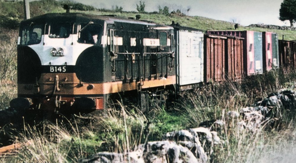 Here’s this old horse box yoke on the last Sligo - Limerick goods. Photos courtesy of Barry Carse from our book “Rails Through The West”. And yes, as Mayner says, the container flats, as per usual practice, were running loose-coupled within a loose-coupled goods train.