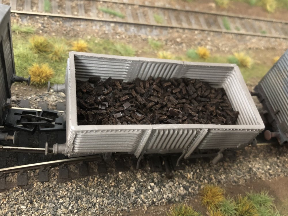 And I'm just noticing - I threw a few sleeper off-cuts into the open wagon amongst the turf, but they don't blend in as well as you'd think! Probably about six in there......... (Must do better!)