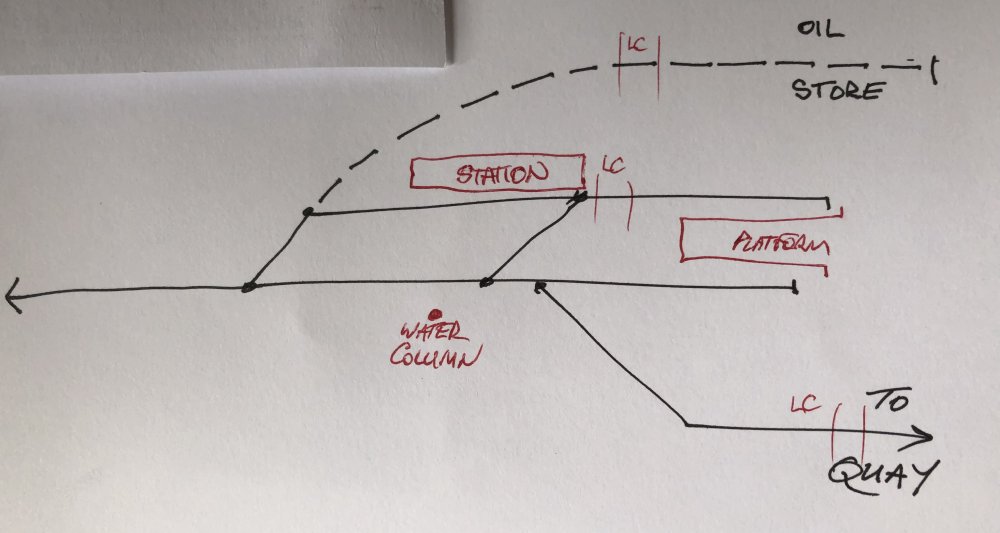 19. In that top (B&W) pic, the palvan seen on the left is at the end of the "new" siding shown on mjy diagram above as a dotted line. The van in the foreground is a GSR van. Note the water column, disused even then, in nthe distance on the right. Odd place for it, given that Westport station was less than 2km away. I have lately found a definitive date for the final closure of this line to REGULAR goods trains. This was Monday 1st March 1943. Thereafter, OCCASIONAL goods trains would operate on an "as-required" basis, and staff in the Quay station (which was fully staffed until then, I think with 2 people) were transferred eslewhere. In the second pic, the very low height of the platform will be noted. The station building was an odd design, more like a small country cottage than railway architecture. Single storey on the platform side, 2-storey on the other side. A very unique and interesting type of prototype for a model.