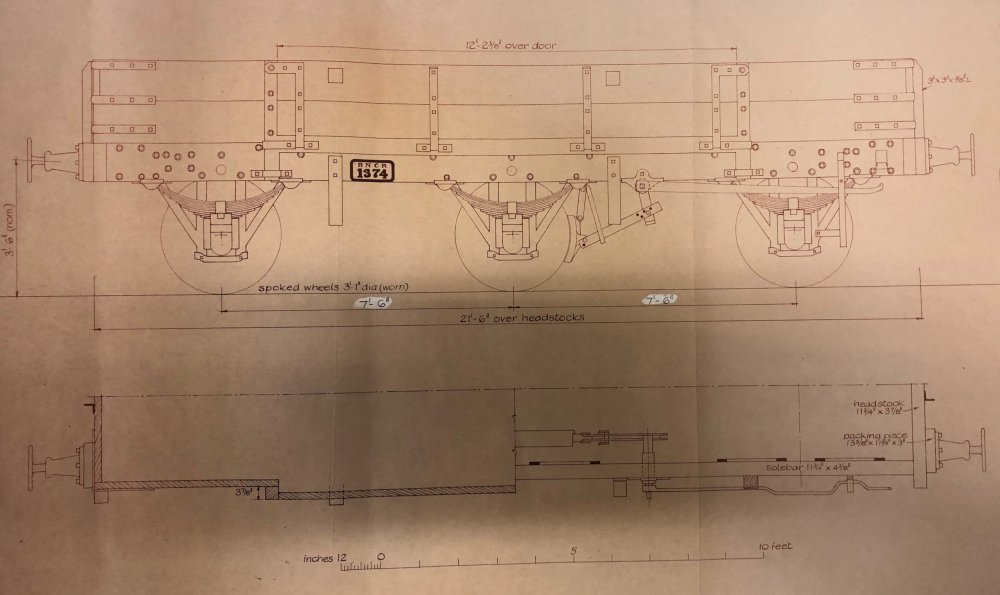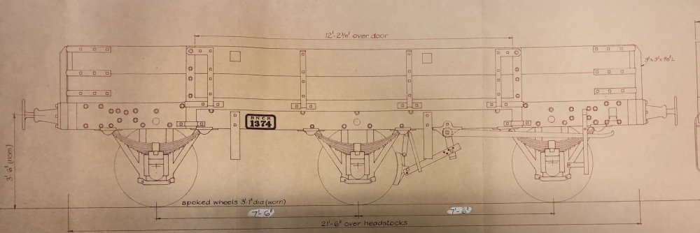 Before I start, MODS - there was some time back a thread where drawings / plans of locos & rolling stock could be posted; what follows better belongs there. I can't find it, so perhaps you might lift all this and deposit it under a more logical heading? Anyway; I came across this, which may be of interest. It's a Belfast & Northern Counties six-wheeled open wagon, which would make a nice addition to any NCC / UTA layout. These were not all that common - obviously the standard four wheelers were more common, but the NCC and GNR(I) seem to have had somewhat more six-wheeled opens than other railways. While GNR ones were to conventional design, the NCC ones were a throwback - like many of their wagons - to a quite antiquated BNCR design. The Irish wagon scene is thankfully getting much needed attention these days, with IRM, SSM, Provincial, KMCE, IFM and other manufacturers making (primarily) kits. However, for all too long it was the neglected child - while we (rightly) drooled over loco offerings and coaches, we'd see layouts with repaints of BR wagons, which in almost all cases - including their pre-grouping ancestors, are no more like Irish designs than an ICR is like "Maedb", or a bubble wagon like a Donegal railcar. A few years ago, we saw Nelson, of this parish (where are you, Nelson?) produce some excellent scratchbuilt NCC wagons, but apart from that, any replication of the very unique goods stock of this system has been left to Provincial's brown van, and little else. Northern goods stock is overall a neglected thing - many BCDR wagons were also of designs simply not seen elsewhere. So here is a six-wheeled NCC wagon, examples of which outlived the BNCR into LMSNCC and early UTA days. Jhb171senior had them rostered on ballast trains on the NCC in the 1940s.