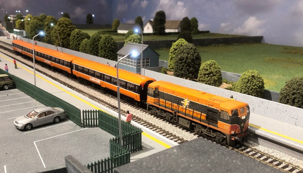 Malahide Casino Model Railway Museum Reopening 19thjhb171achill replied to jhb171achill's topic in News The Taras and a local train pass through Malahide on the layout today. Meanwhile a ballast train pauses at Mallow......