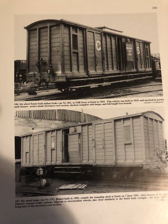 On pages 124 and 126 of Taylor's book there are drawings of two of their standard designs of 30ft long six-wheelers. Those vans were built to the same overall external dimensions, so that's a start. They started life in ordinary wagon grey, but in later years got a darker grey shade (with the GSR) and a few - not all - of them ended their days in plain CIE green, of the later (lighter) shade. None were ever in the darker green.
