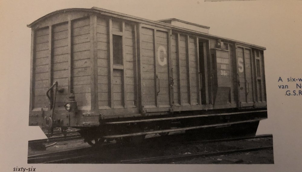Here is a typical cattle wagon of an earlier generation (1880s - 1920s). The shorter wheelbase was the norm on all railways back then, not just the DSER. This wagon is obviously of GSWR origin. Examples of many varieties of older wagons of this length were still in use in a few cases just about into the "black'n'tan" era - certainly in 1960/1. The massive wagon building programme of the 1955-65 period in Inchicore put paid to all old designs very quickly, though.